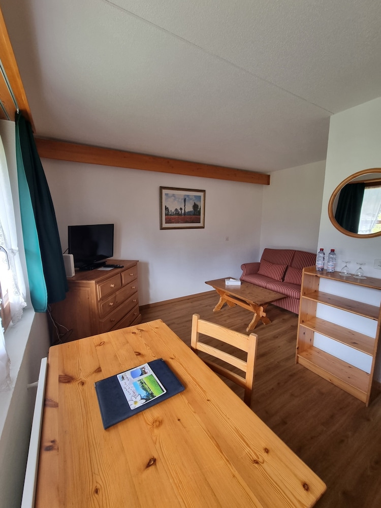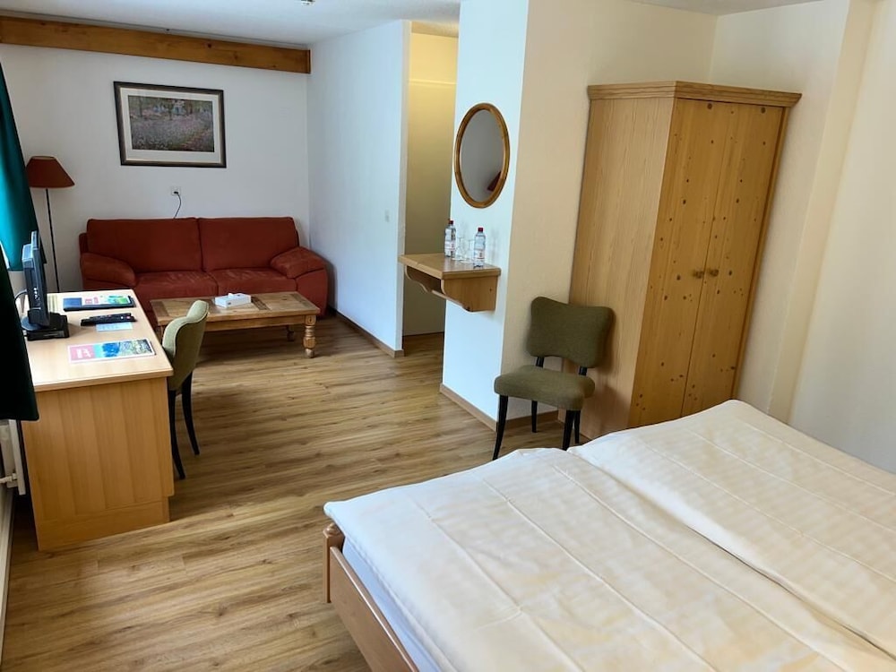 Très bonne hôtel dans un charmant village la chambre etait propre et spacieuse bien chauffer malgré le froid personnel souriant bon petit dejeuner avec fromage local, vous bénéficiez d'un pass pour prendre le train gratuitement tout le long de votre sejour et activité a prix reduit