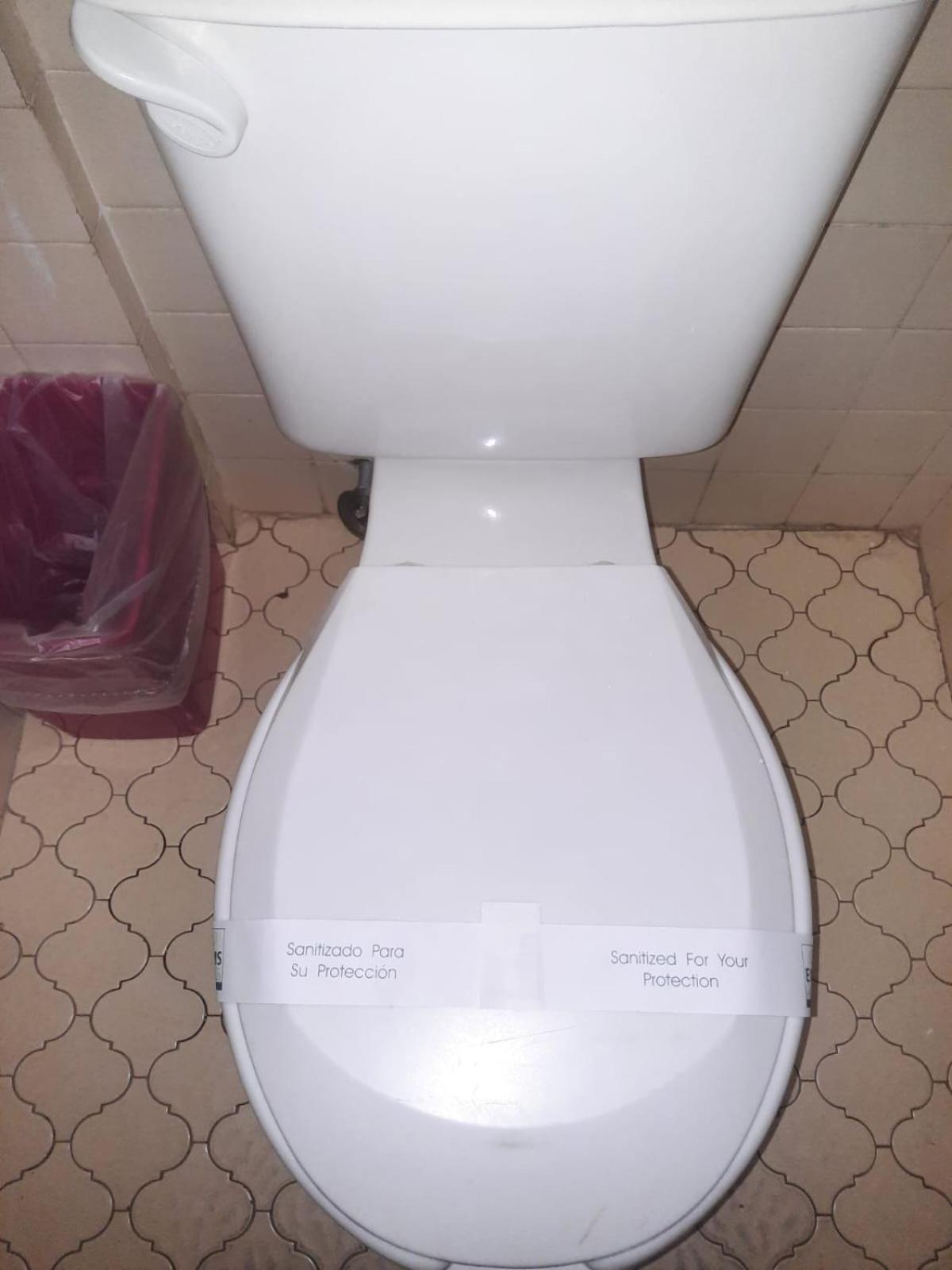 The bathroom had hot water and a toilet seat.