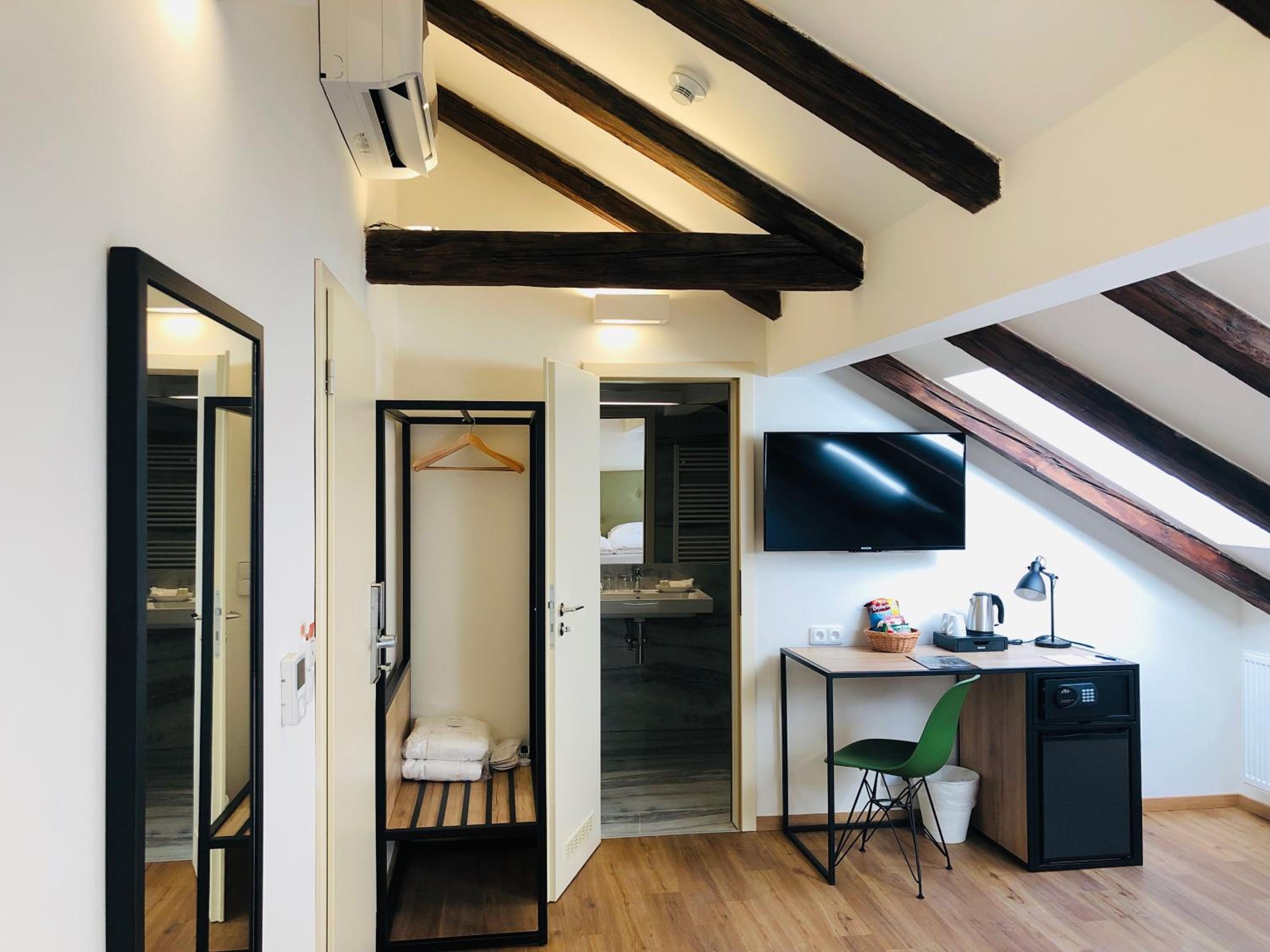Von außen erscheint es klein, aber es ist groß und schön. Die Altstadt und die Moldau ist der Nähe vom Hotel. Die Straßenbahn fährt genau beim Hotel entlang und in der Nähe ist eine Haltestelle.
