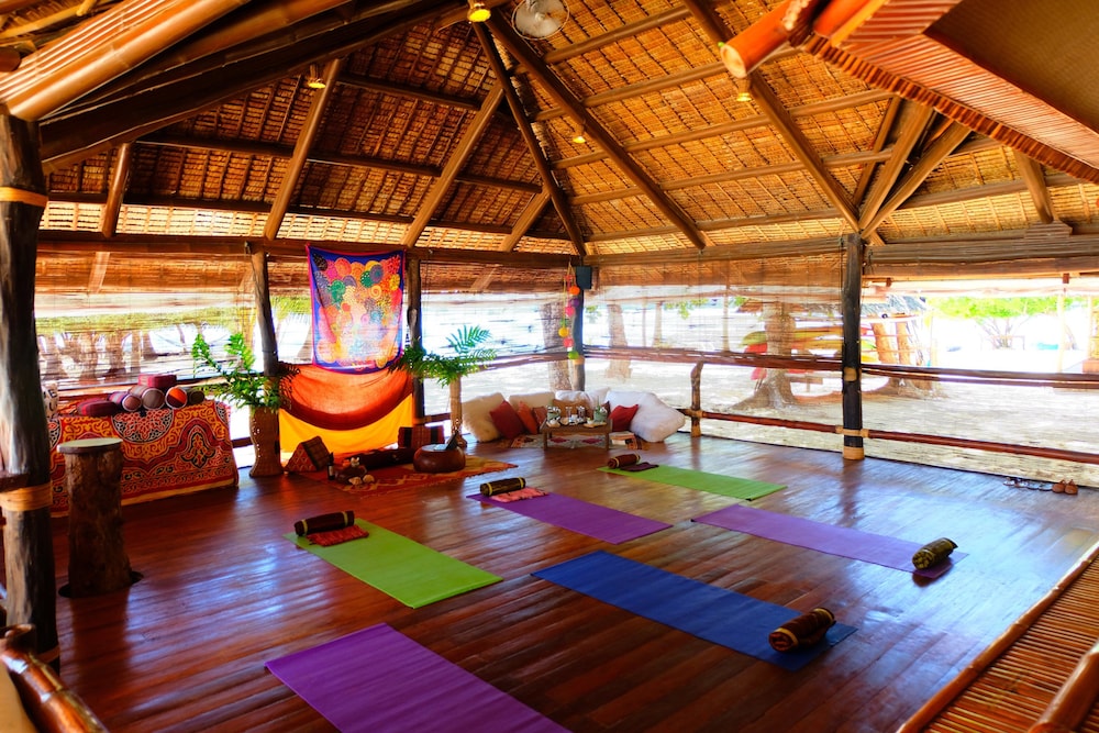 The food is organic and keep you well all day even though the sun is burning hot all day. There are snorkeling gear, kayaks and paddling boards for loan, books, games and a bar that keeps you busy during the days.