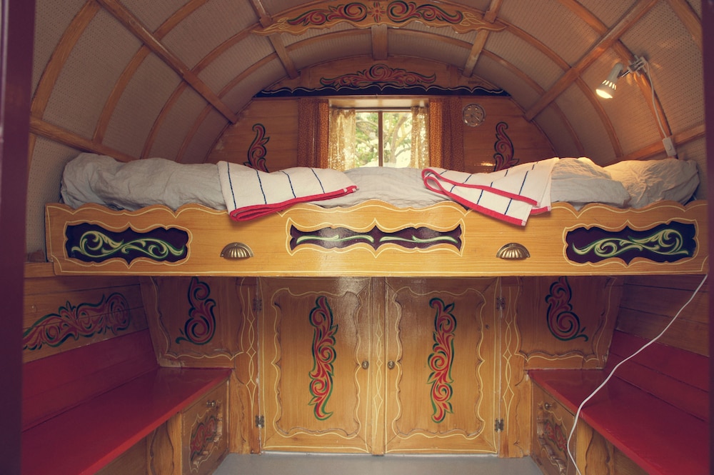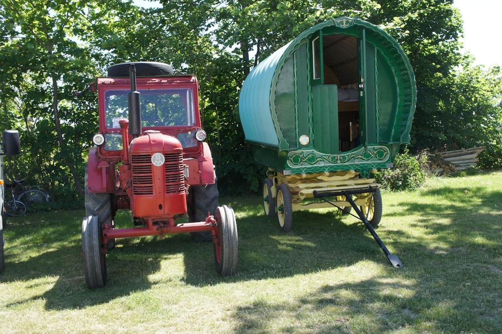 Unik oplevelse at prøve at bo i autentiske engelske sigøjnervogne i em dejlig afslappende atmosfære kun 5-6 kilometer fra den dejlige Mossby Strand.