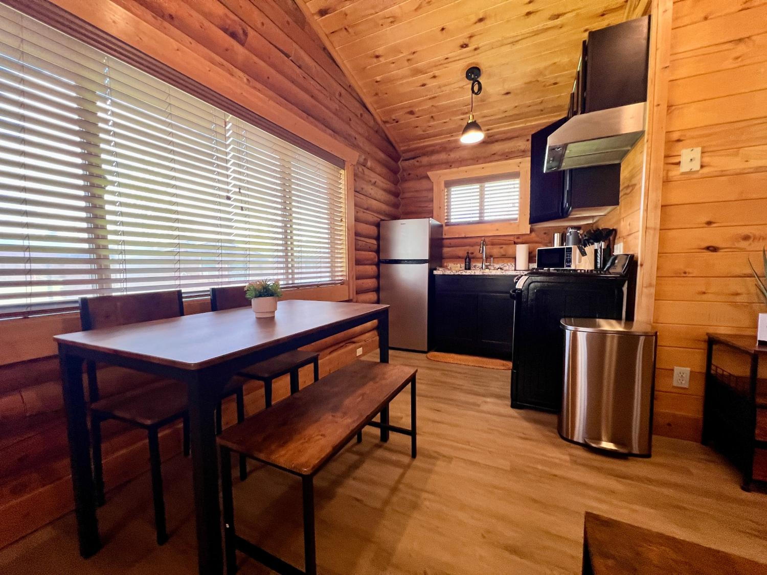 Cozy Cabins with Kitchenettes: Enjoy the convenience of having a kitchen in select rooms, complete with a fridge, microwave, and stovetop for preparing meals during your stay.