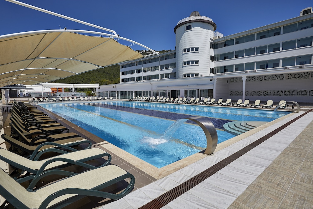 Enjoy complimentary self-parking, LCD TVs, minibars, and private balconies in the 175 guestrooms. Stay connected with wireless internet and explore nearby attractions like Daima and Kemer Marina.