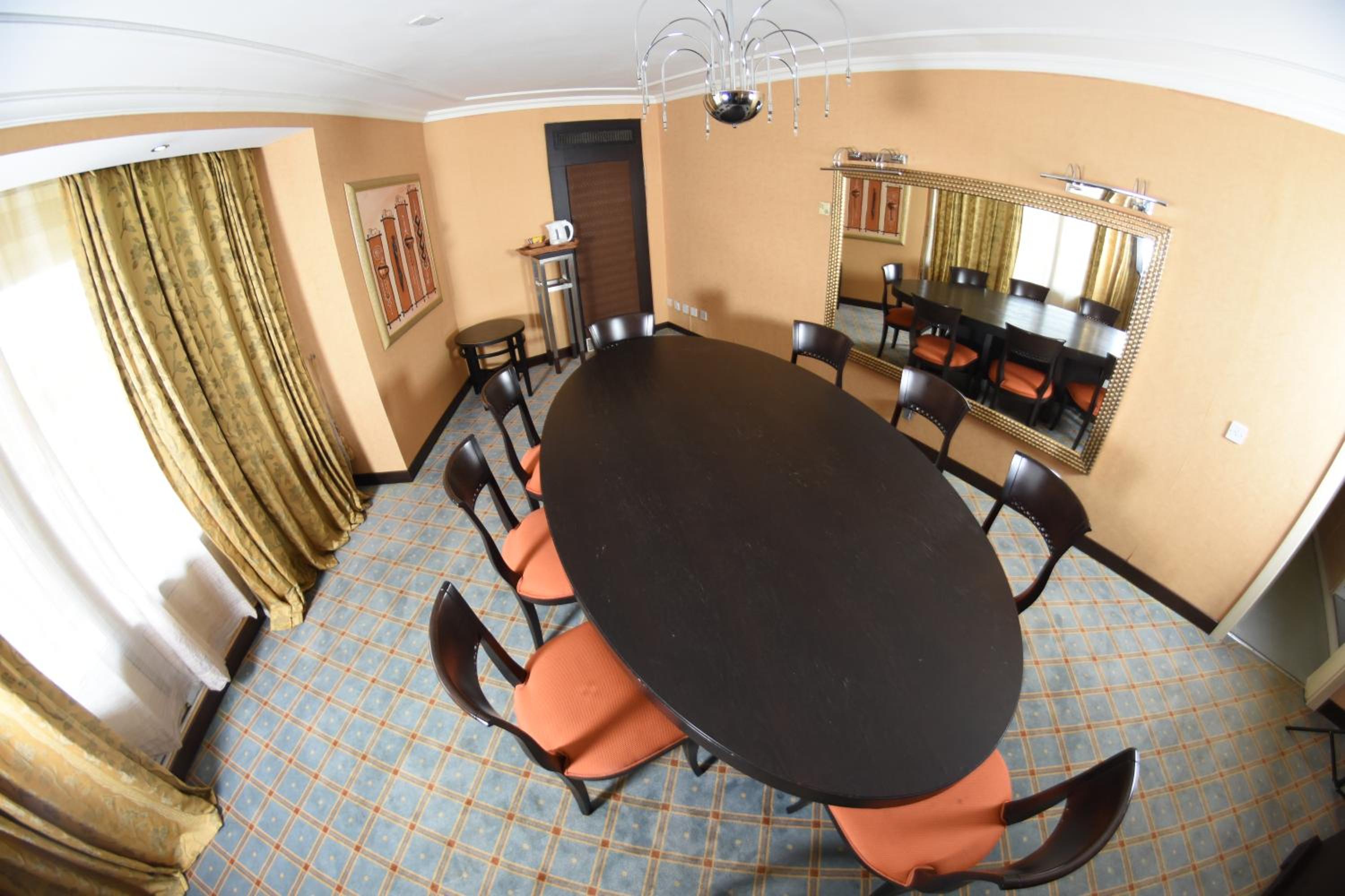 The guest rooms at the hotel are elegantly furnished and equipped with modern amenities, including a kitchenette and a flat-screen TV. Start your day with a delicious vegetarian or continental breakfast and savor African and American cuisine at the on-site restaurant.