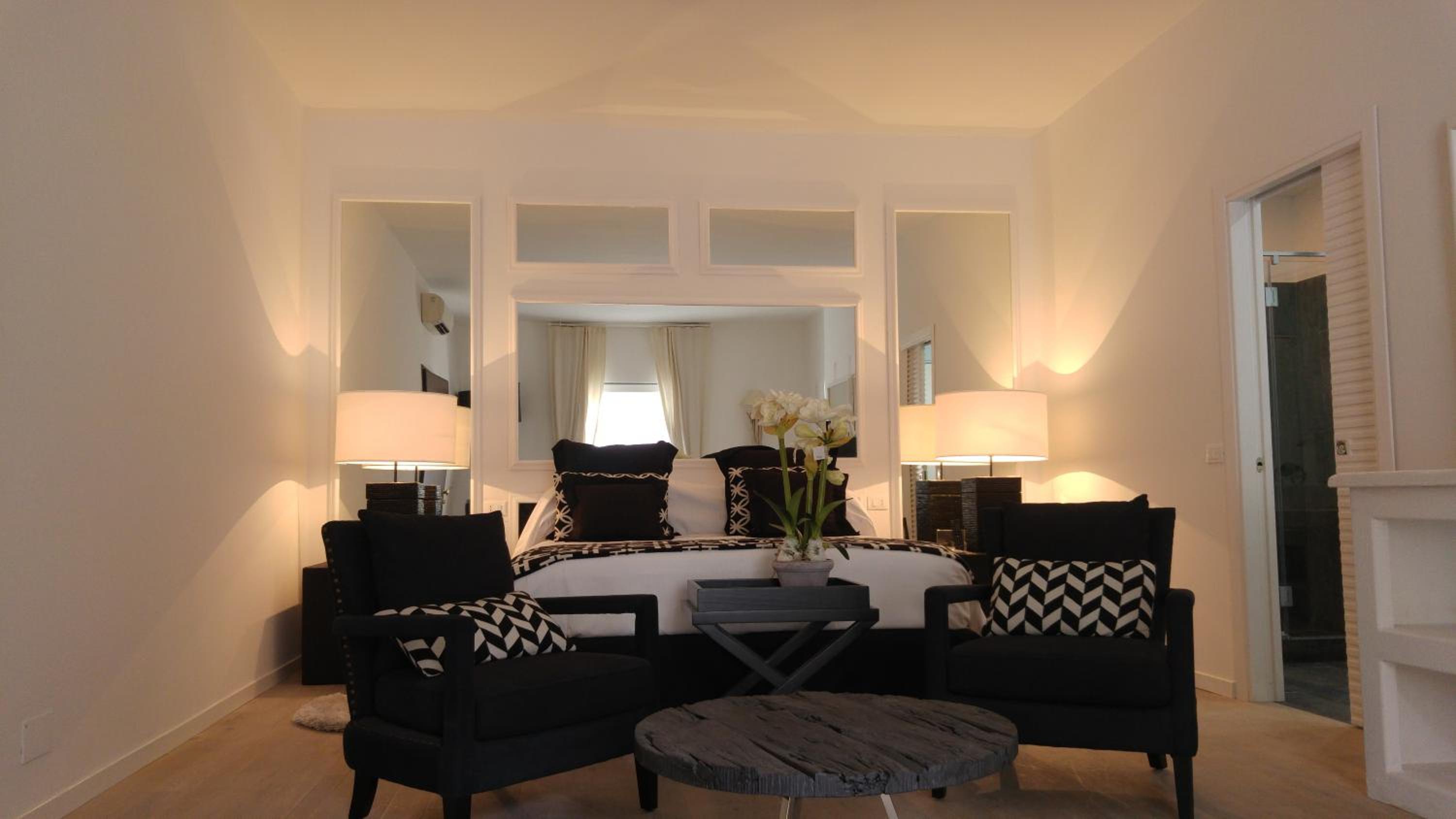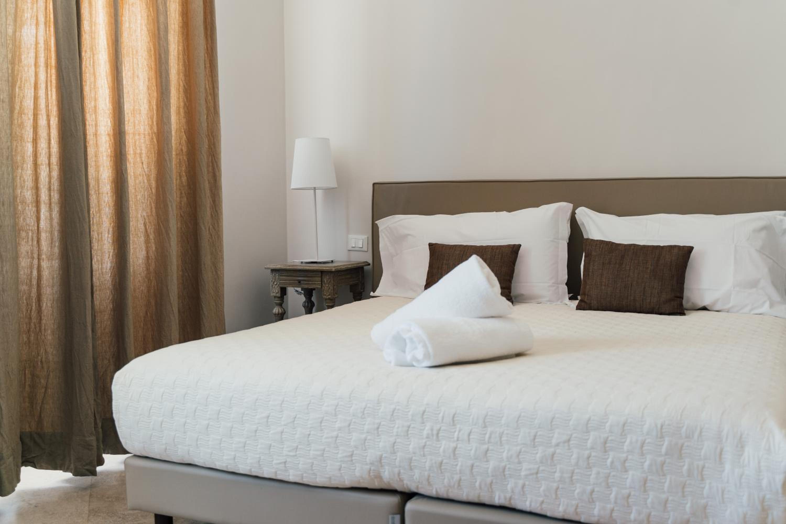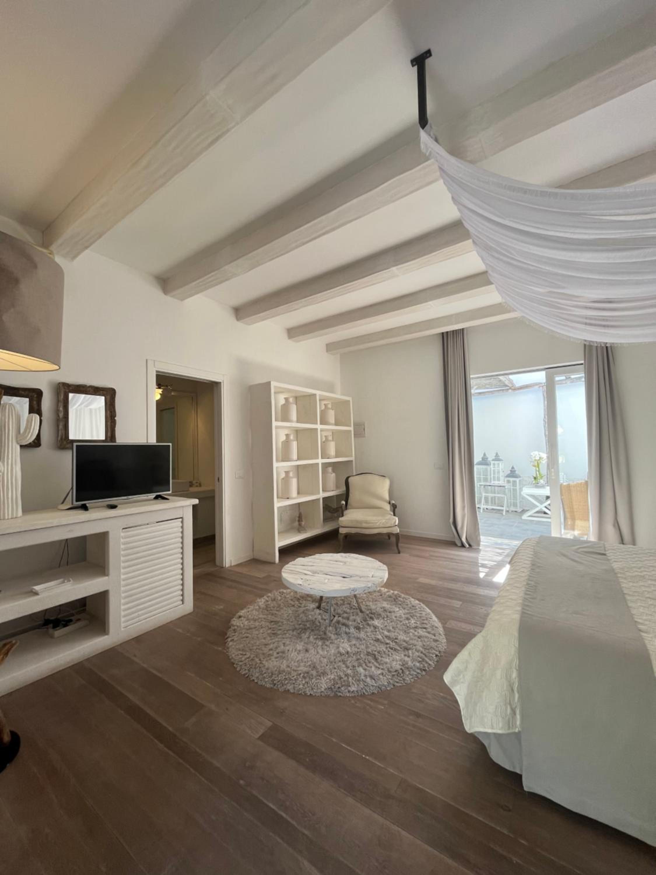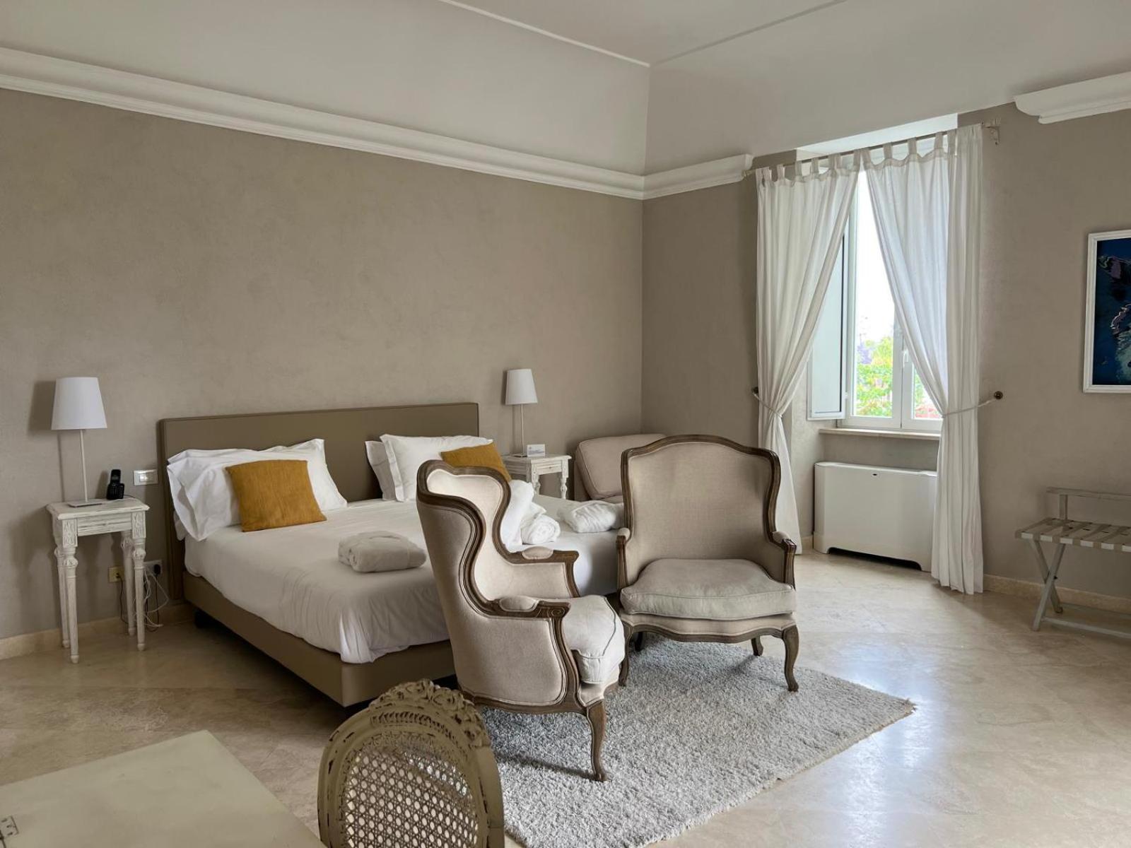 Relais Corte Degli Aragonesi offers modern rooms with elegant furnishings, some featuring canopy beds. Each air-conditioned room includes a flat-screen TV, minibar, and a private bathroom with luxurious amenities.