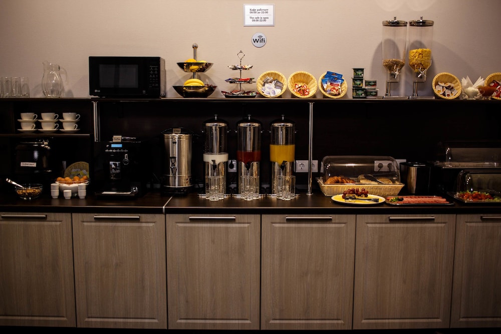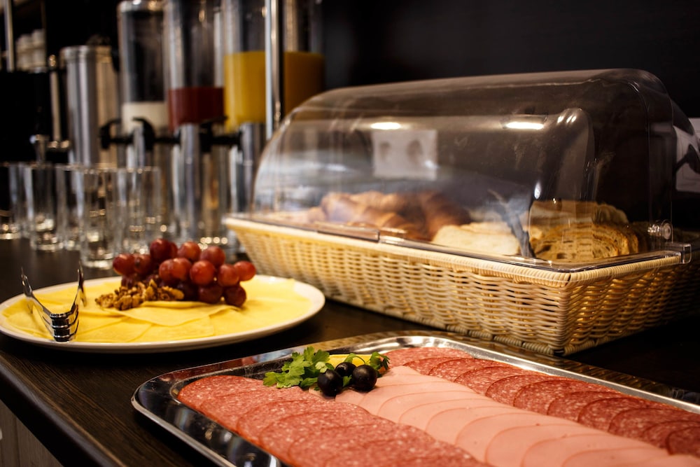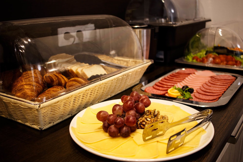 We stayed at the hotel for 5 nights in an standard room. It is a new hotel and the room was very clean and spacious, very warm and quiet, with an excellent bathroom although it could have been nice to have an extra chair (there was only 1) and a table.. The breakfast room is in the same area with the front desk (there is no lobby). The buffet breakfast had no variety, small, the quality was very poor and it was the same every day. The front desk clerk was the only person who was around, so we had to ask her every time for the refilling. The hotel is very close to the Nevsky Prospect and next to the metro station. A 24/7 supermarket, a small shopping mall, restaurants, a big church, coffee shops and many more, make the neighborhood perfect. Check in takes 5 minutes, check out takes 1 sec!