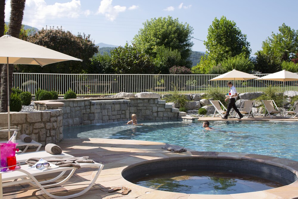 Make a splash in the seasonal outdoor pool or explore the area on rented bicycles – fun awaits at Hôtel Les Grillons.