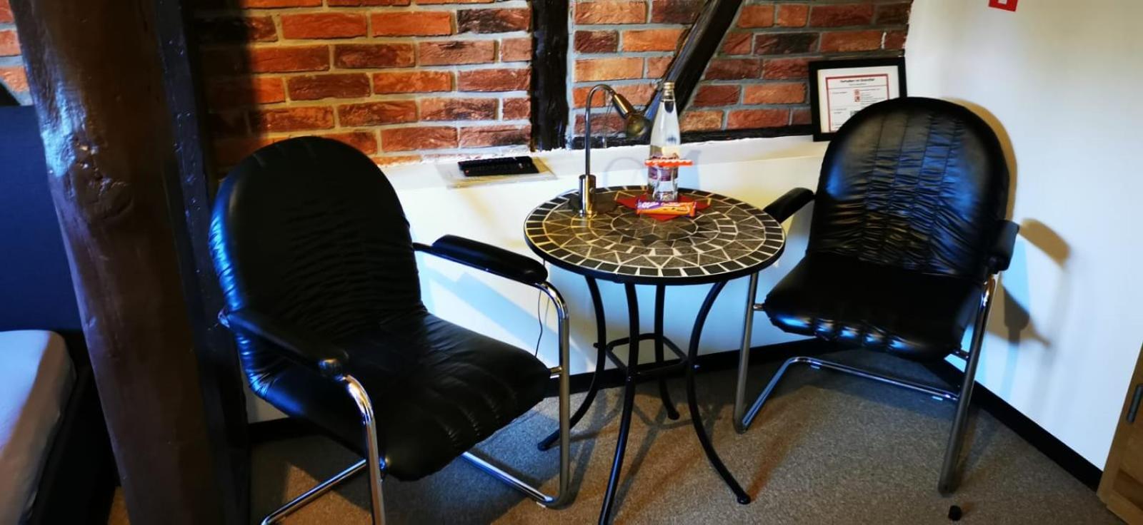 Das Zimmer ist ungewöhnlich groß, Einrichtung und Gesamteindruck im ersten Moment nicht besonders schön, aber durchaus zweckmäßig, alles da, was man braucht. Incl. eigener Dusche/WC. Für ein, zwei Nächte perfekt. Weg zum Zimmer über Treppchen durch einen Garten.