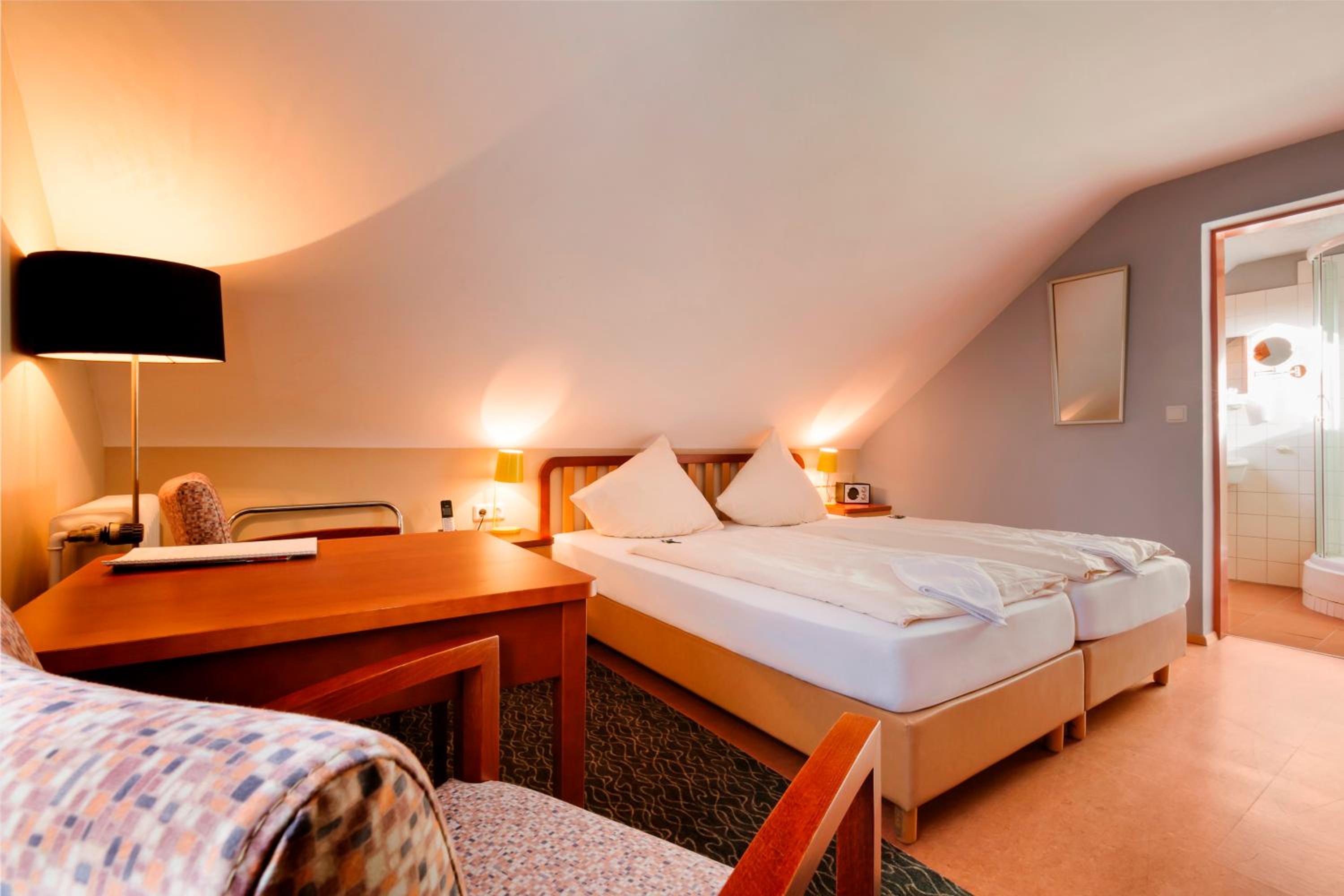 Er was verteld dat het hotel geen lift had, maar het bleek dat de trap voor mijn moeder -naar de tweede etage- moeilijk te doen was. Het bijgeboekte ontbijt moesten we gebruiken in een ander hotel (efficient maar wel heel druk) en hier waren sommige medewerkers (wellicht door de drukte) niet altijd even vriendelijk. De douche was qua temperatuur een wisseldouche, waar je van erg koud naar zeer warm ging. De handdoeken worden alleen nog maar gewisseld op verzoek en dit verzoek moest je indienen bij de centrale check-in. Dit werkte voor ons niet handig. Dat dit niet meer dagelijks gebeurt vind ik prima, maar als je vijf dagen ergens verblijft, zou één wissel -vanuit het hotel- toch wel fijn zijn. De matrassen waren zeer zacht met een "put" in het midden.