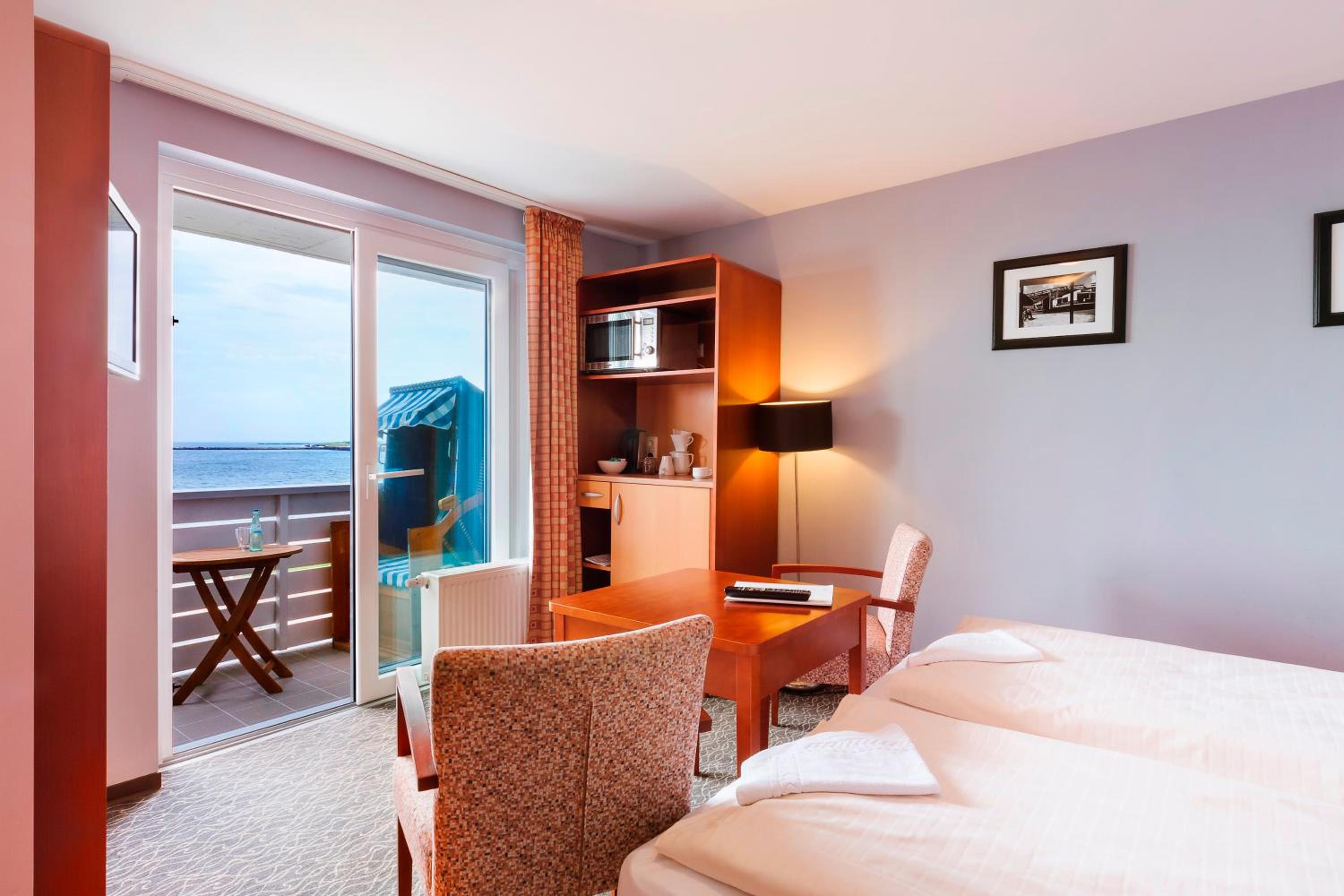 Convenient Location: Situated directly on Helgoland’s beach promenade, our hotel is a short stroll from the town centre, yacht harbour, and a large outdoor swimming pool.