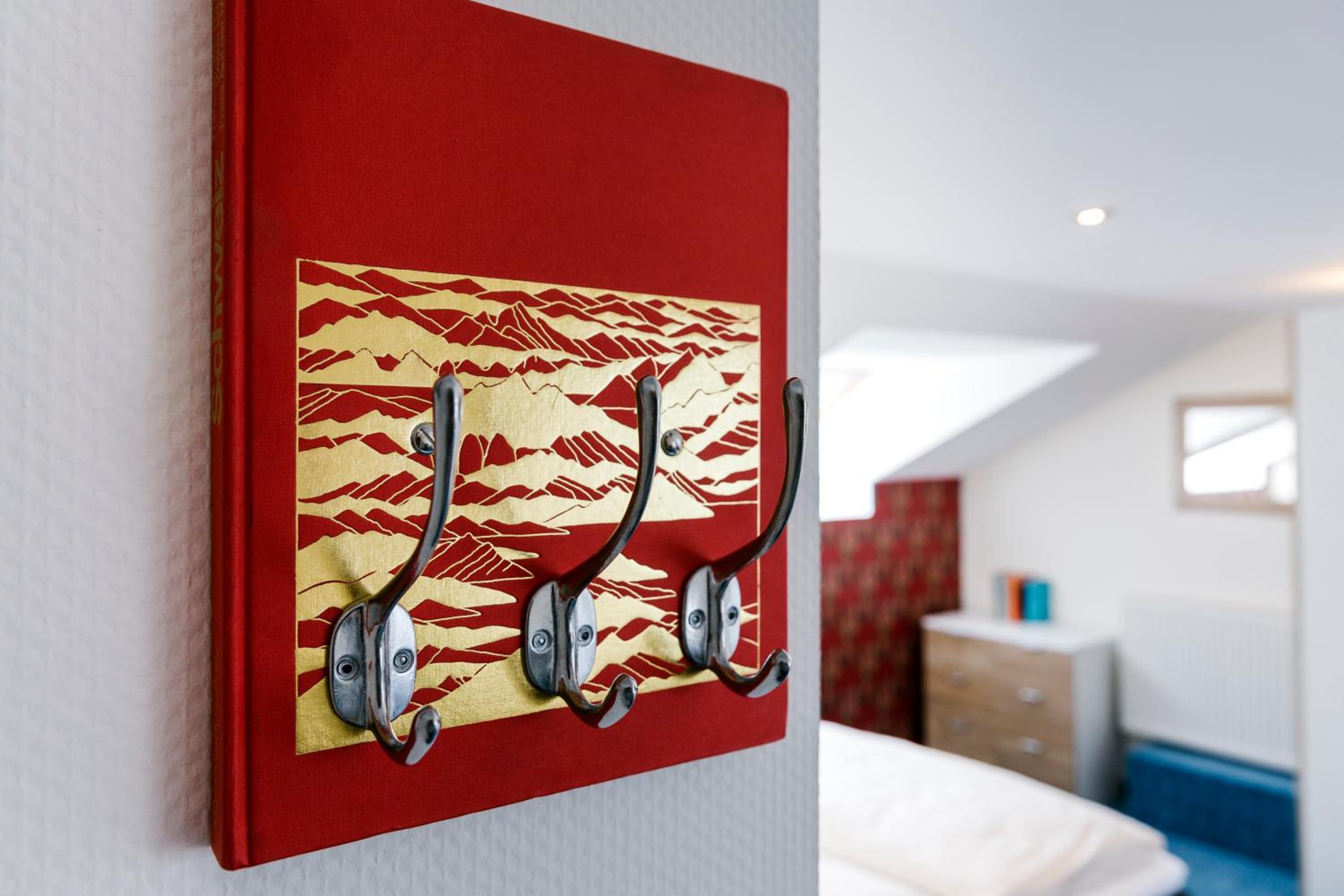 interessantes Design der Zimmer, umfangreiches Frühstück, sehr freundlicher aufmerksames Personal, Lebensmittelunverträglichkeiten wurden problemlos und abwechslungsreich berücksichtigt, sehr schöner Ausblick auf Insel und Düne aus dem Frühstücksraum, Wasserkocher Tee, Kaffee, Tassen und Erstausstattung der Minibar kostenlos, die Zimmer tragen die Namen von mit Helgoland verbundenen Schriftsteller*innen und sind mit deren Bild und einem Zitat versehen Freundlicher und hilfsbereiter Service an der außerhalb liegenden Rezeption