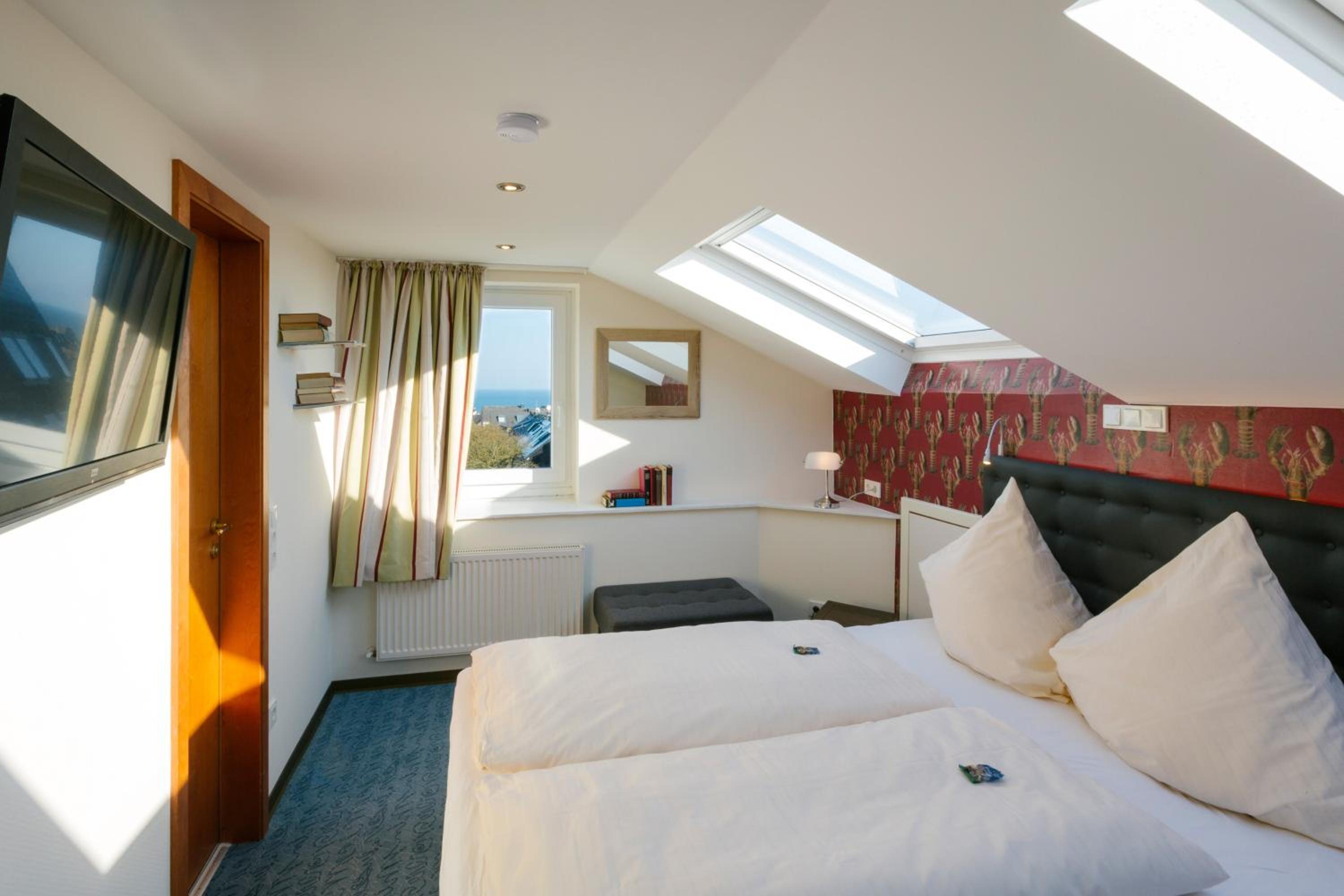 Indulge in rooms adorned with timeless décor and equipped with essential amenities like a TV, telephone, and free WiFi. The Timm Thaler room provides a breathtaking vista of the North Sea, perfect for unwinding after a day of exploration.