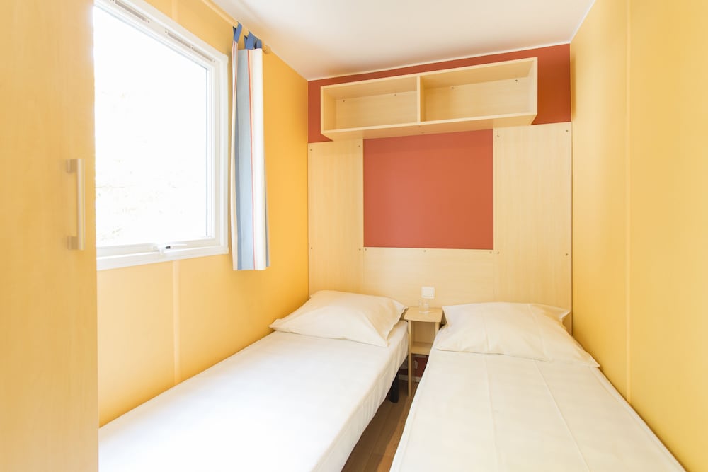 Ul vrai arnaque avec hotels.com je regrette amèrement d'avoir fait une réservation avec ce site on m'a montré un extérieur tres joli une location magnifique et une fois sur place on a eu une cabine extrêmement petite pour 4 personnes pas de télé pas de Wi-Fi pas de ventilation pas de climatisation on suffoquait toutes les nuits aucune activité pout les jeunes une modeste piscine pas de toboggans rien de manières générales je ne recommande pas de se rendre aux abricotiers poopins à Argelès-sur-mer vrai arnaque location de draps qui ne m'a pas été notifié