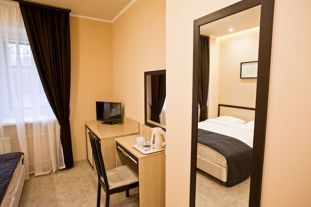 Although the hotel staff don’t speak fluenty English they use the technology to translate from Russian to your language at the front desk in order you can understand everything they have to tell you and you must know there. The rooms have the exact space for the bed, the bathroom and the desk. You have free water outside your room and coffee/tea inside to make it yourself. I have to highlight the staff do everything possible to make you feel comfortable always. Overall it’s a nice place to stay for a short stay.