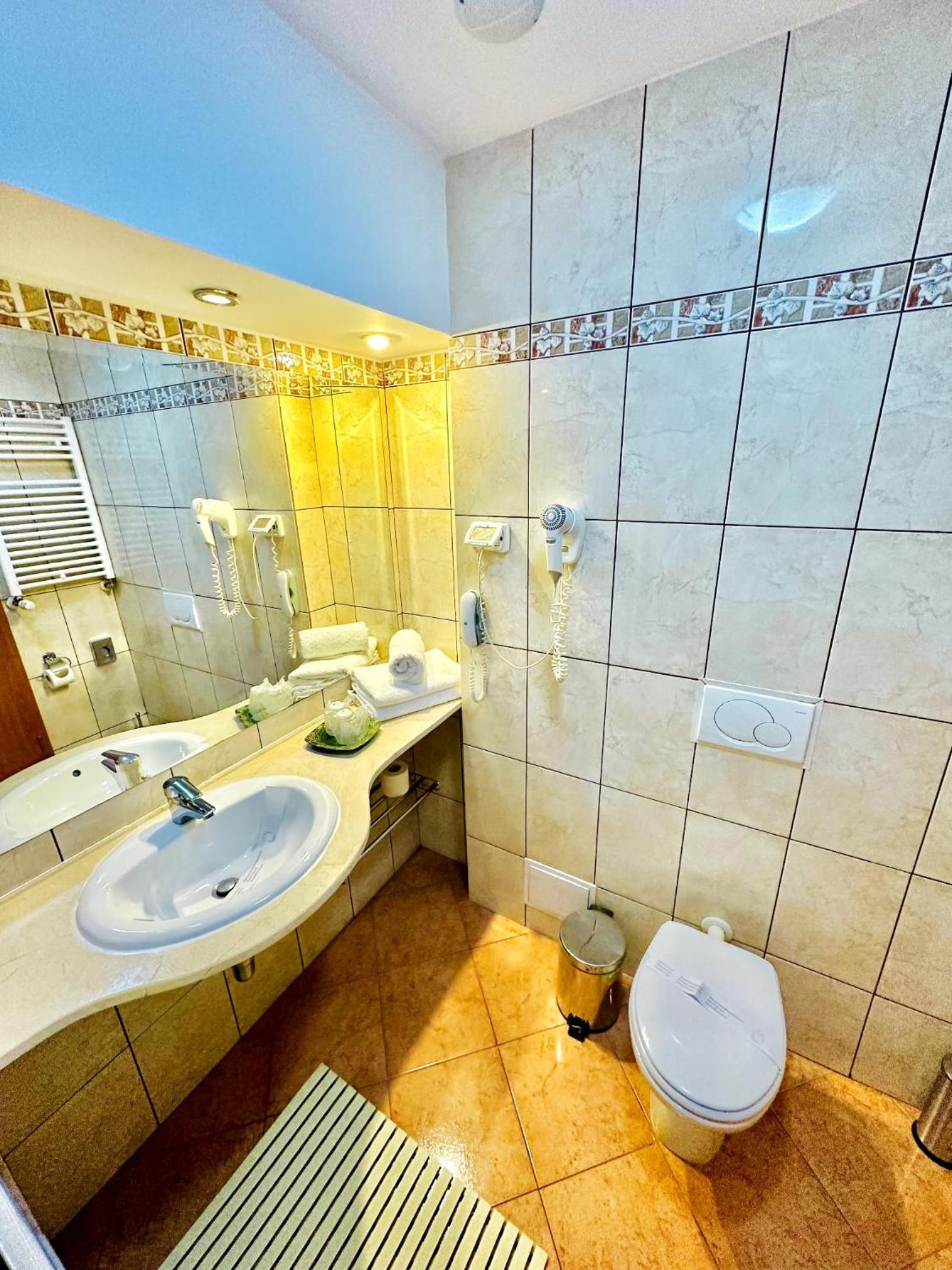 The room is from the time of communism, with holes in the curtains, dirty switches, the bathroom with leaks and the a bathtub you are afraid to get into. In addition, at a 4* hotel, there is no mini-bar and the carpets are stained.