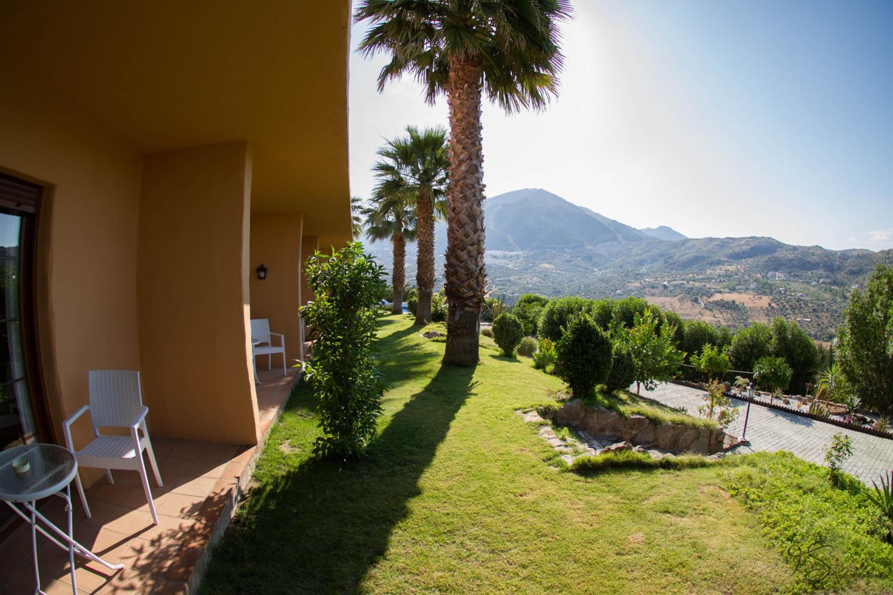 Scenic Surroundings: Nestled in the Alcaucín Valley, Hotel Cortijo de Salia boasts an outdoor pool and gardens, offering breathtaking mountain views from its terrace.