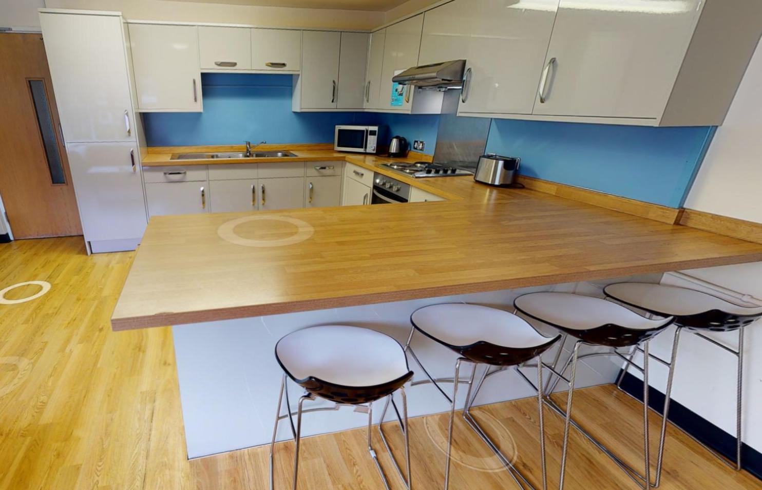Kitchen- useful to have access to fridge, kettle and microwave.