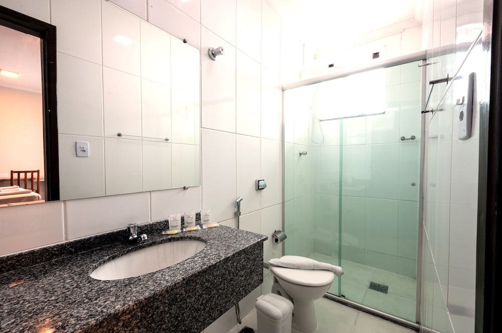 Excelente atendimento, bom café da manhã com espaço amplo que comporta os hóspedes, estacionamento um pouco limitado e o piso do nosso quarto estava com terra