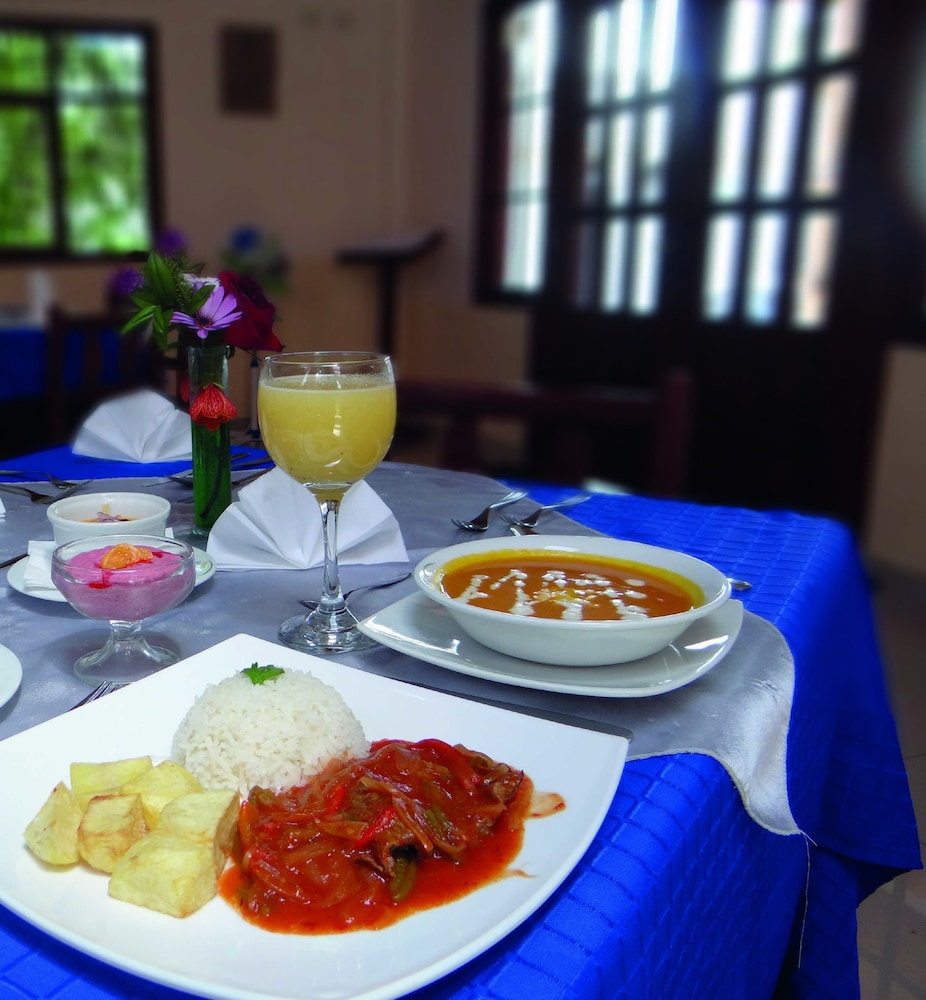 Hotel just a short distance off the Panamericana highway. It was a stopover. We did not care how close or far away is from downtown Salcedo. The town is not a tourist place except for its famous ice cream. The hotel allows pets therefore it was very convenient for us since we were traveling with our beloved Suka. There is a surcharge of $5. Breakfast, included in price, is fair. They provide instant coffee which is nonsense when preparing fresh coffee is not a big deal. Premises are fairly secure. Considering the surcharge, breakfast for 2 and a superior room with a king bed for a price of $50 including 22% taxes is very good.