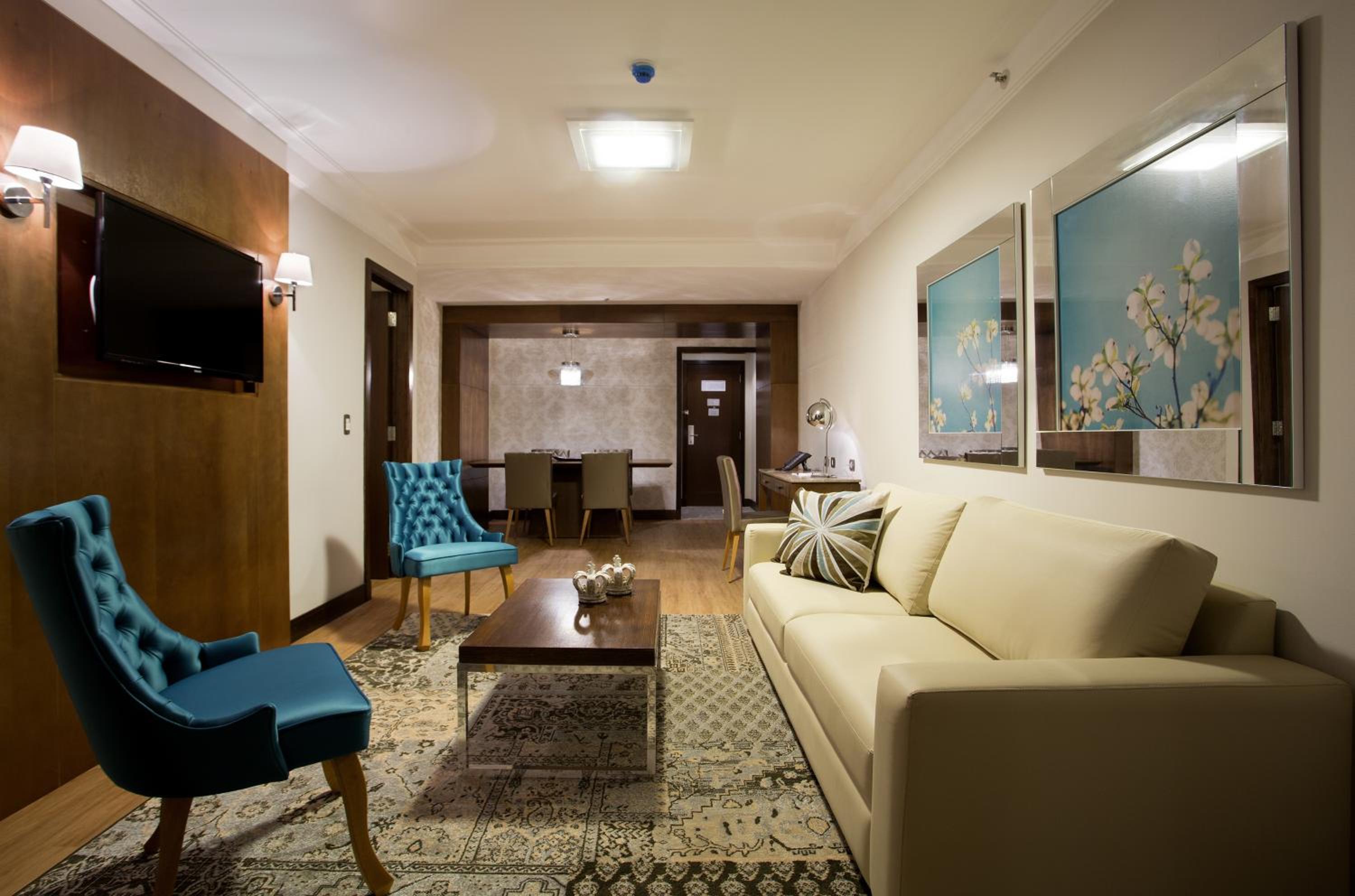 Each guestroom at Royal Atlântica Macaé Hotel is elegantly furnished and equipped with modern amenities such as a flat-screen TV, air conditioning, and a minibar. The private bathrooms are stocked with complimentary toiletries, ensuring a comfortable stay for all guests.