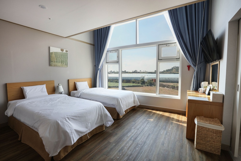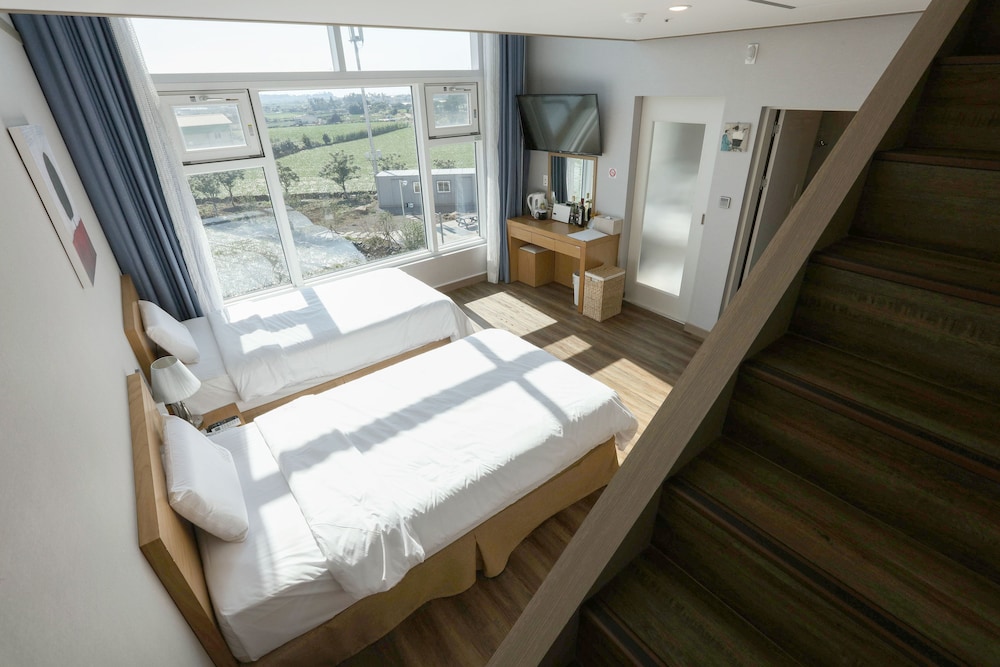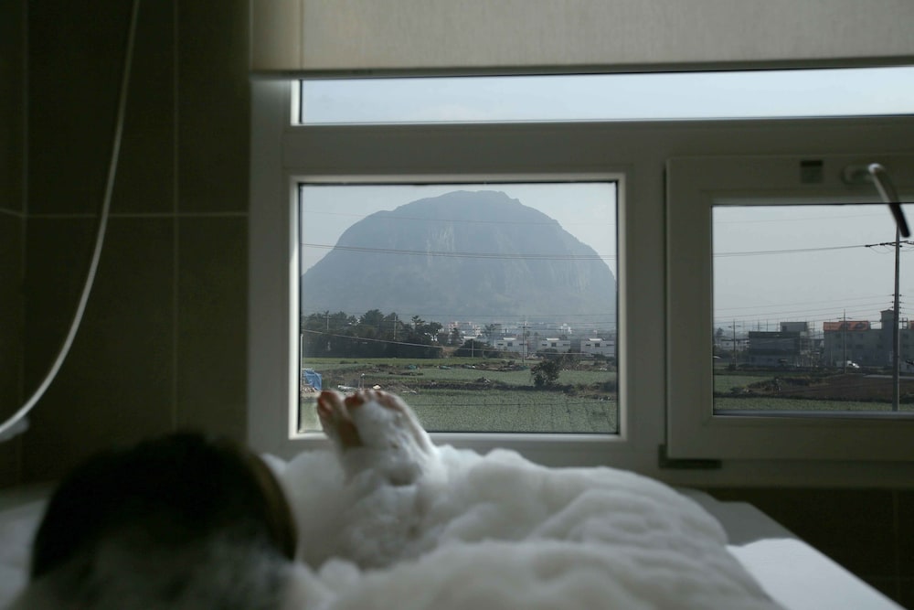 월풀,침구,식기들의 청결상태는 최상이었으나 뚜벅이에게 맞는 위치는 아니었어요. 편안한 휴식때문에 욕조있는 숙박을 선택했는데 산방산 유채꽃밭까지 도보 30분, 용머리해안까지 도보 40여분, 올레 10코스 해안까지 20여분이 걸리는 애매한 위치에 3인 조식까지 8만원이면 가성비는 떨어지네요. 차량가지고 깨끗하고 서비스 좋은 숙소 원한다면 좋은 숙박이지만 담엔 해안 가까이 좀 더 번화가에서 머물고 싶네요.