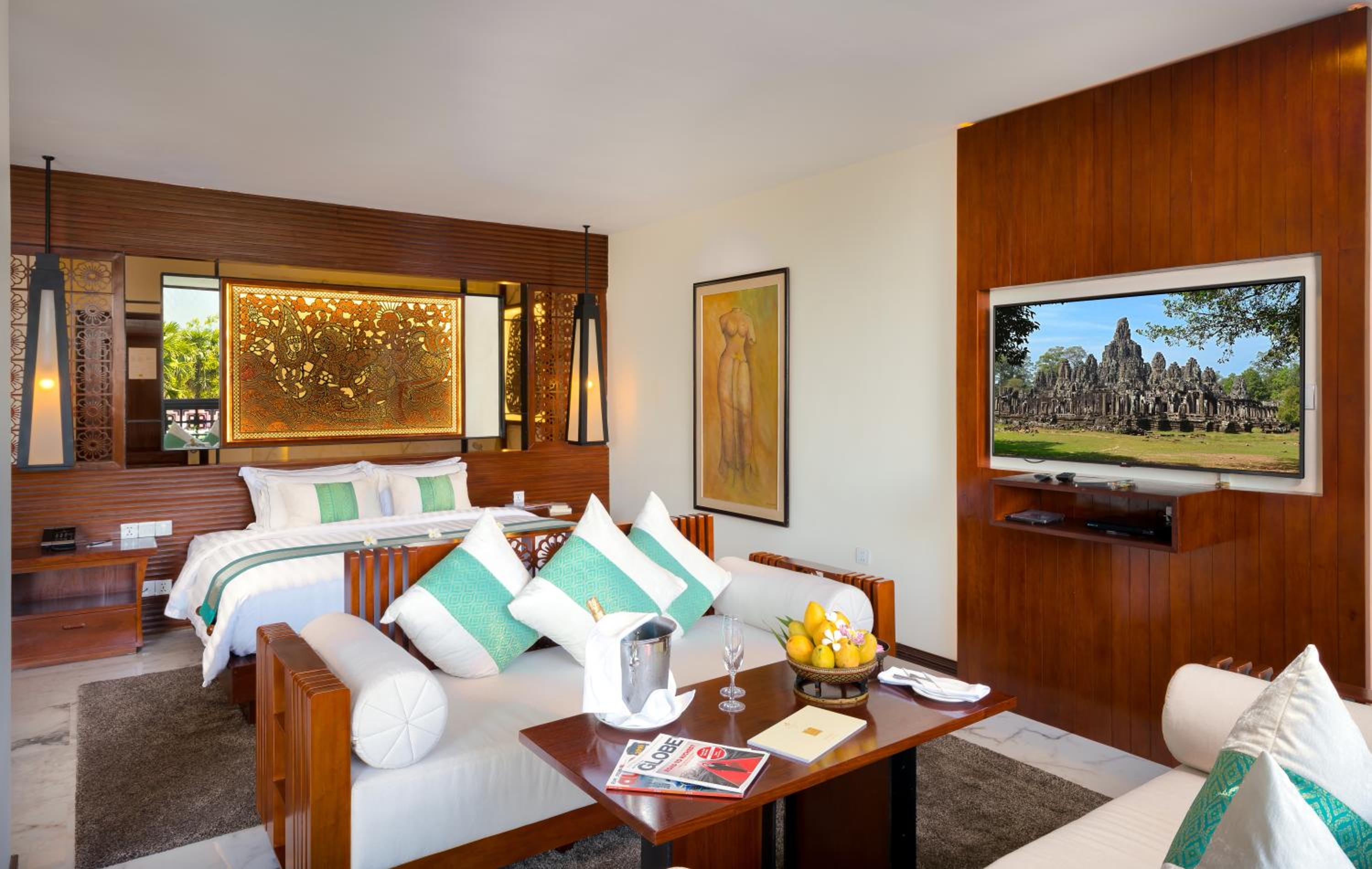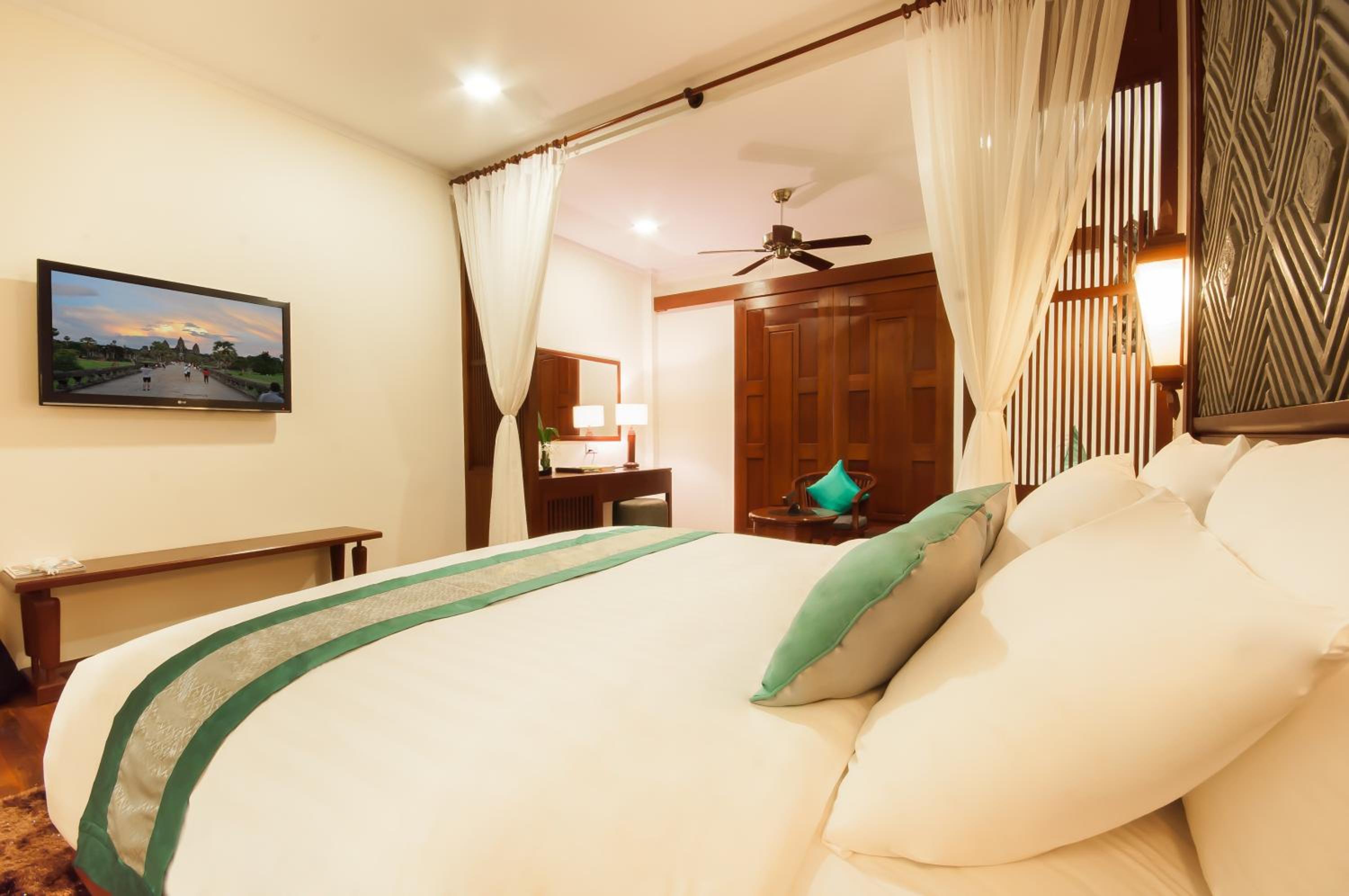 The service, facilities, rooms and food were all amazing. Such a wonderful 5 days in Siem Reap. We enjoyed it so much we extended our stay! Definitely a 5 star experience. We stayed at the Palace in New York City at this was so much better. Breakfast buffet was wonderful, dinners with live music and food around the pool all very good. We want to thank David and all the others who treated us with such kindness. We felt such peace and kindness here. Thank you again for a wonderful stay!