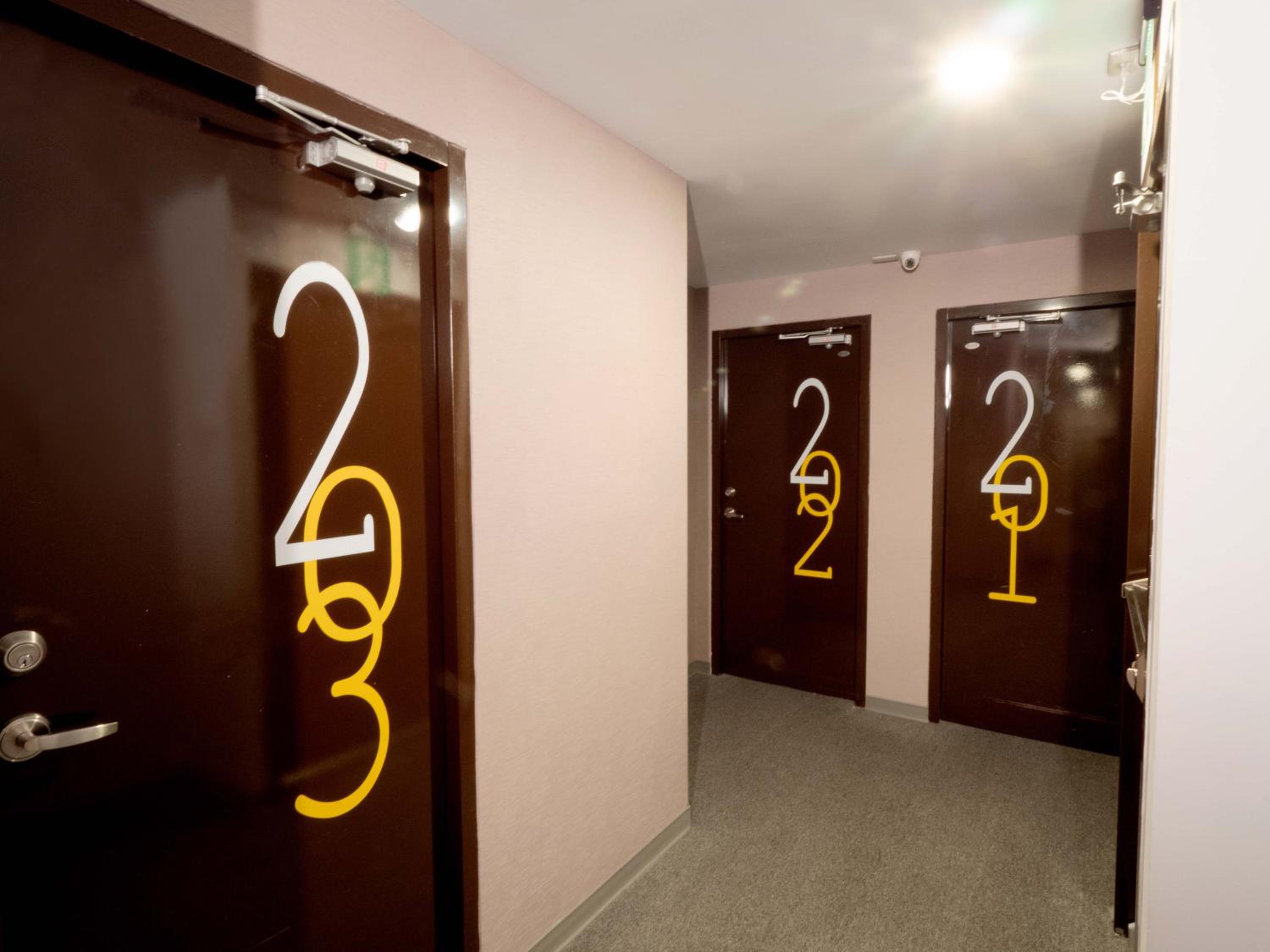 睡覺時完全關燈的時候才發現,走廊燈光可以透進房間門下方的縫,這個感覺就很像一般家裡的房間門,建議可以多加裝門下隔音條,以改善走廊聲音會影響房間內的安寧。