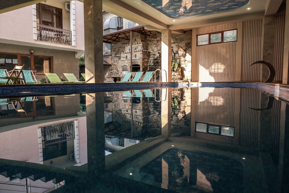 Очень удобное расположение, в номерах чисто, халаты предоставили даже на ребёнка. Бассейн к сожалению холодный и хотелось бы на официальном сайте видеть более точную информацию. Ну в целом проживание очень довольны