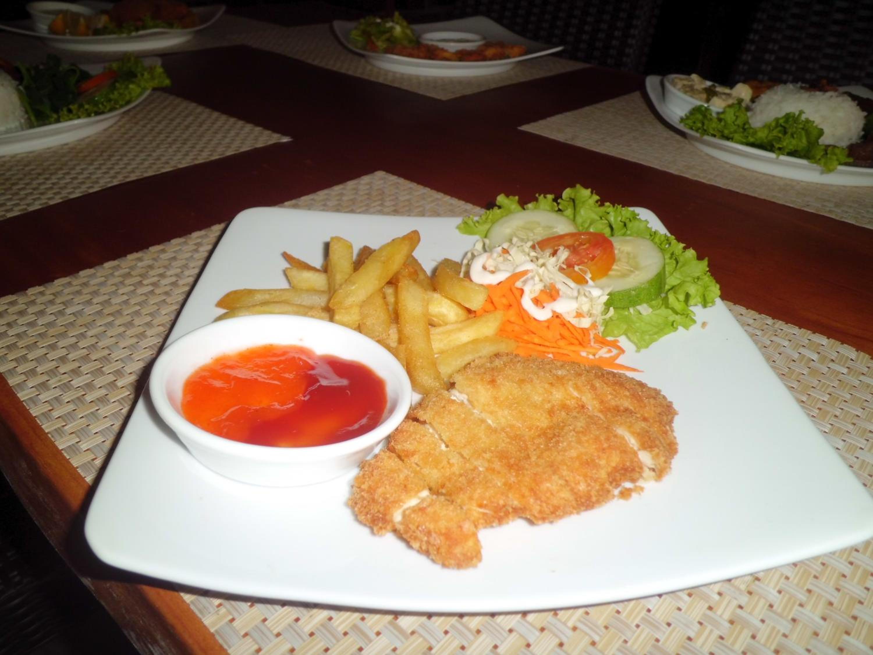 The location is great, quite close to Borobudur Temple, lots of food nearby. The staff were nice and helpful. The room provided everything we needed for our short stay: clean and cool room, comfortable bed and pillow, clean bathroom and toilet. The villa we booked was right next to the swimming pool, which was very convenient. The pool was fantastic, very good size that allowed for serious lap swimming, not just for having fun. Breakfast was decent, the omelette was good.