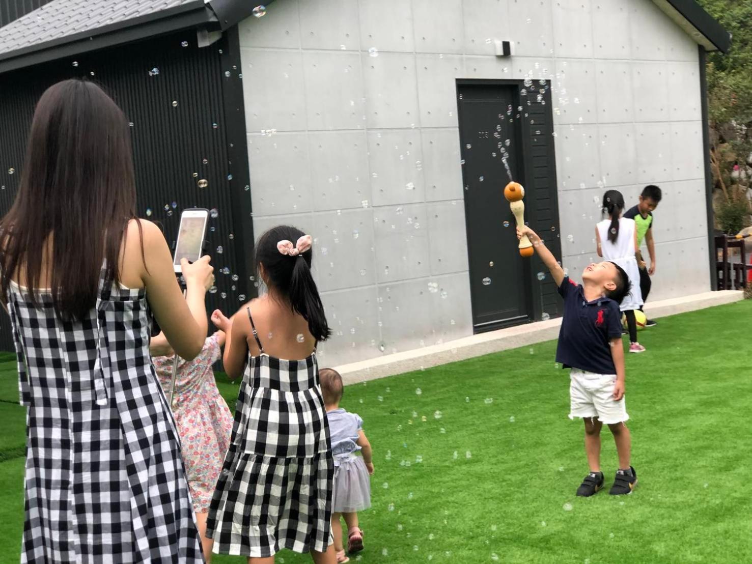 很放鬆的環境,孩子在草坪玩得超開心