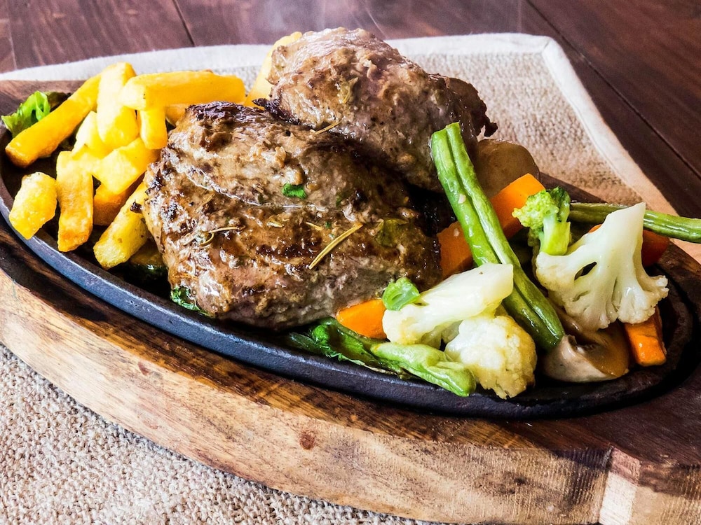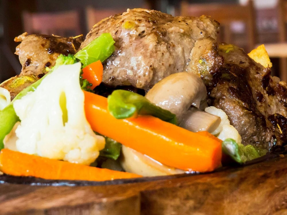 Sat on the first floor by the balcony. Good view of Lakeside road. Ordered pork chop with mashed potatoes and sauteed vegetable and a glass of red wine. No complaints.Maybe a bit pricy. I am reviewing just the restaurant. Did not stay there.
