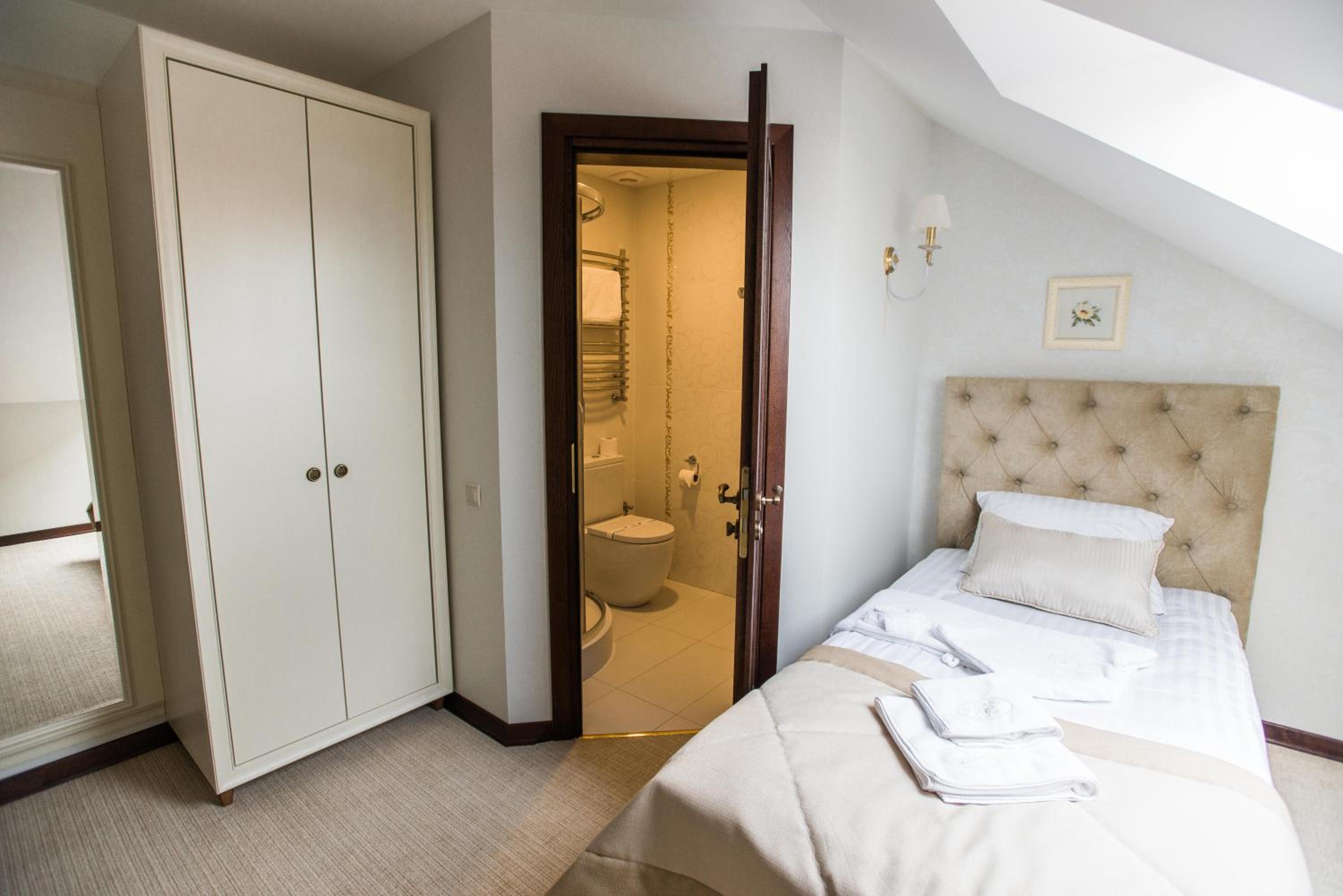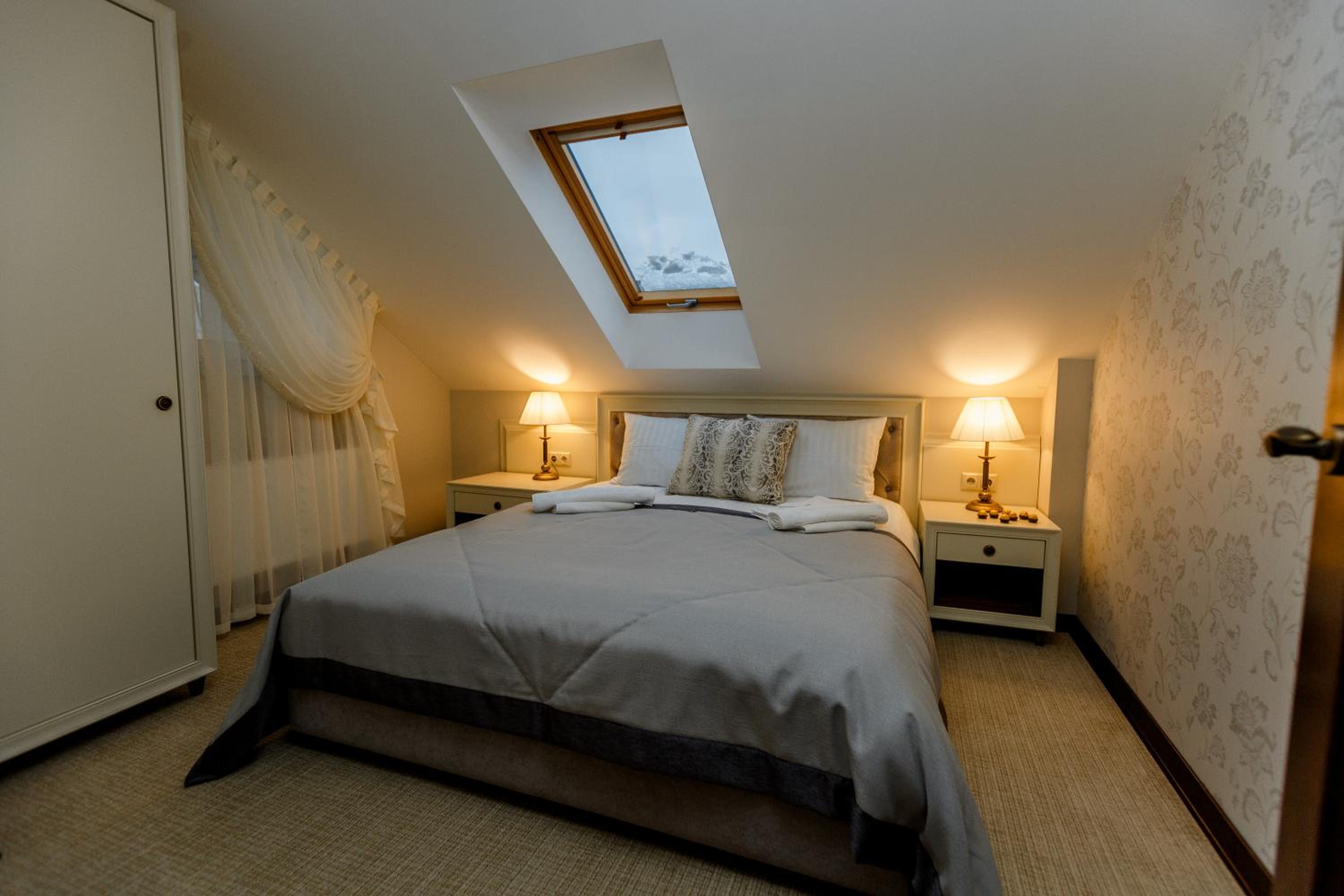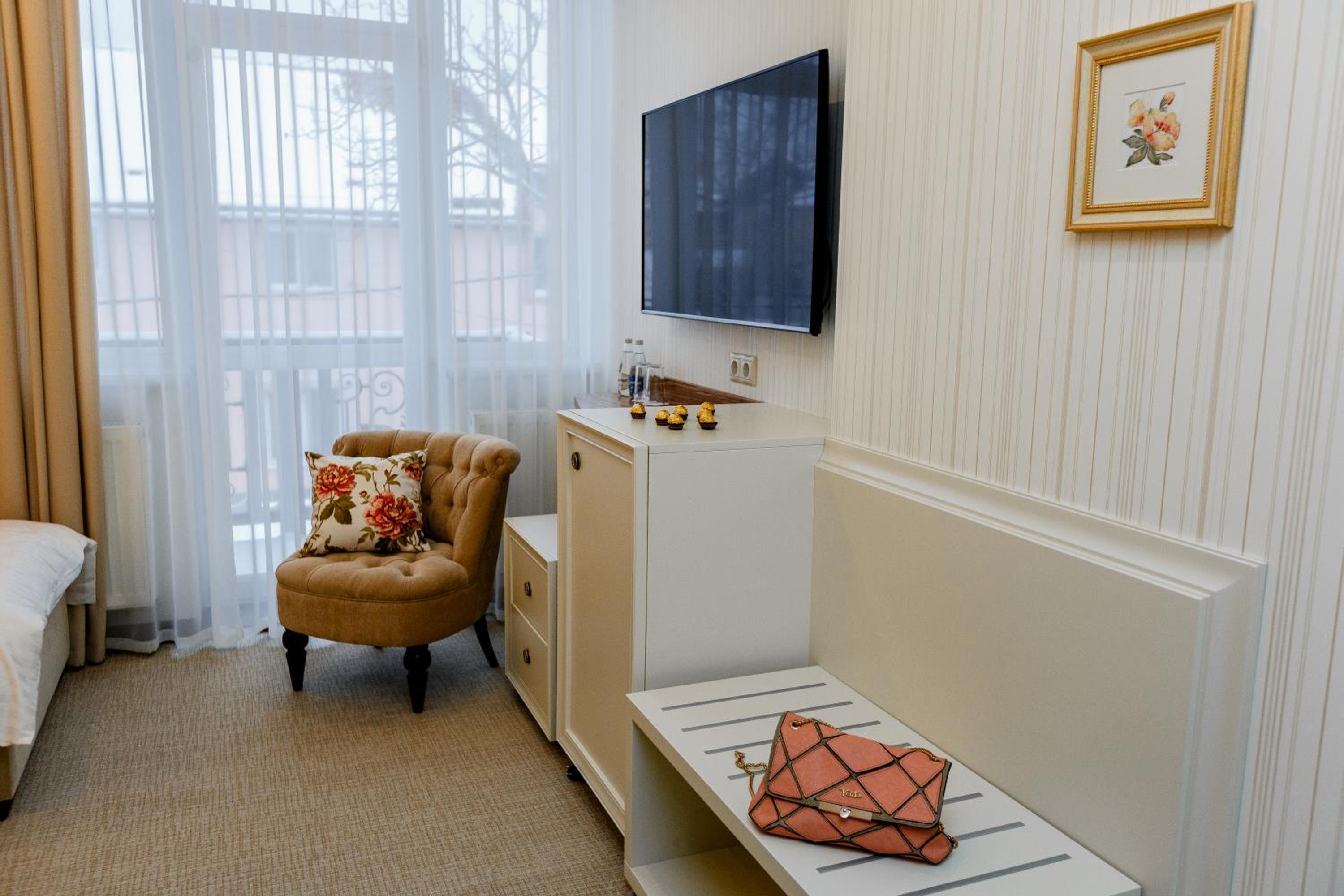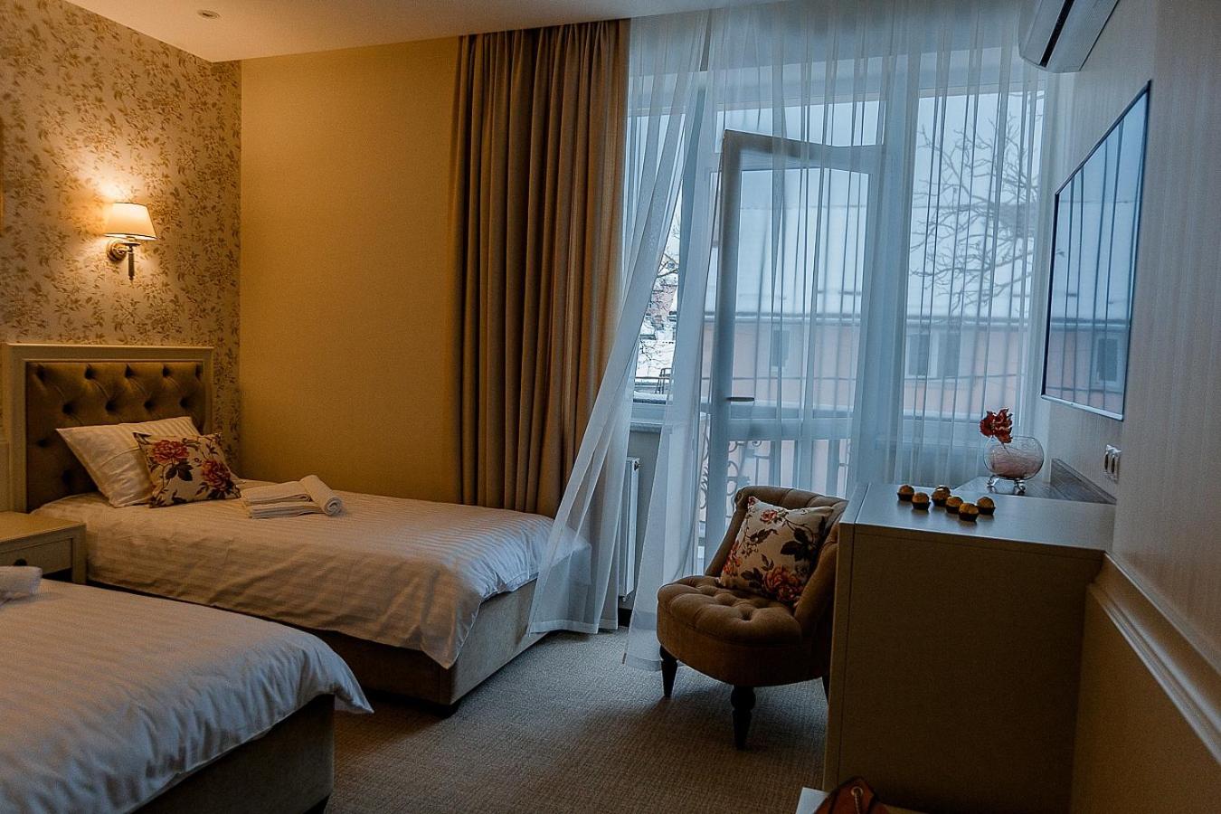 Galant Hotel in Truskavets offers elegant rooms equipped with modern amenities such as flat-screen TVs and air conditioning. Some rooms even feature charming terraces for a relaxing stay.