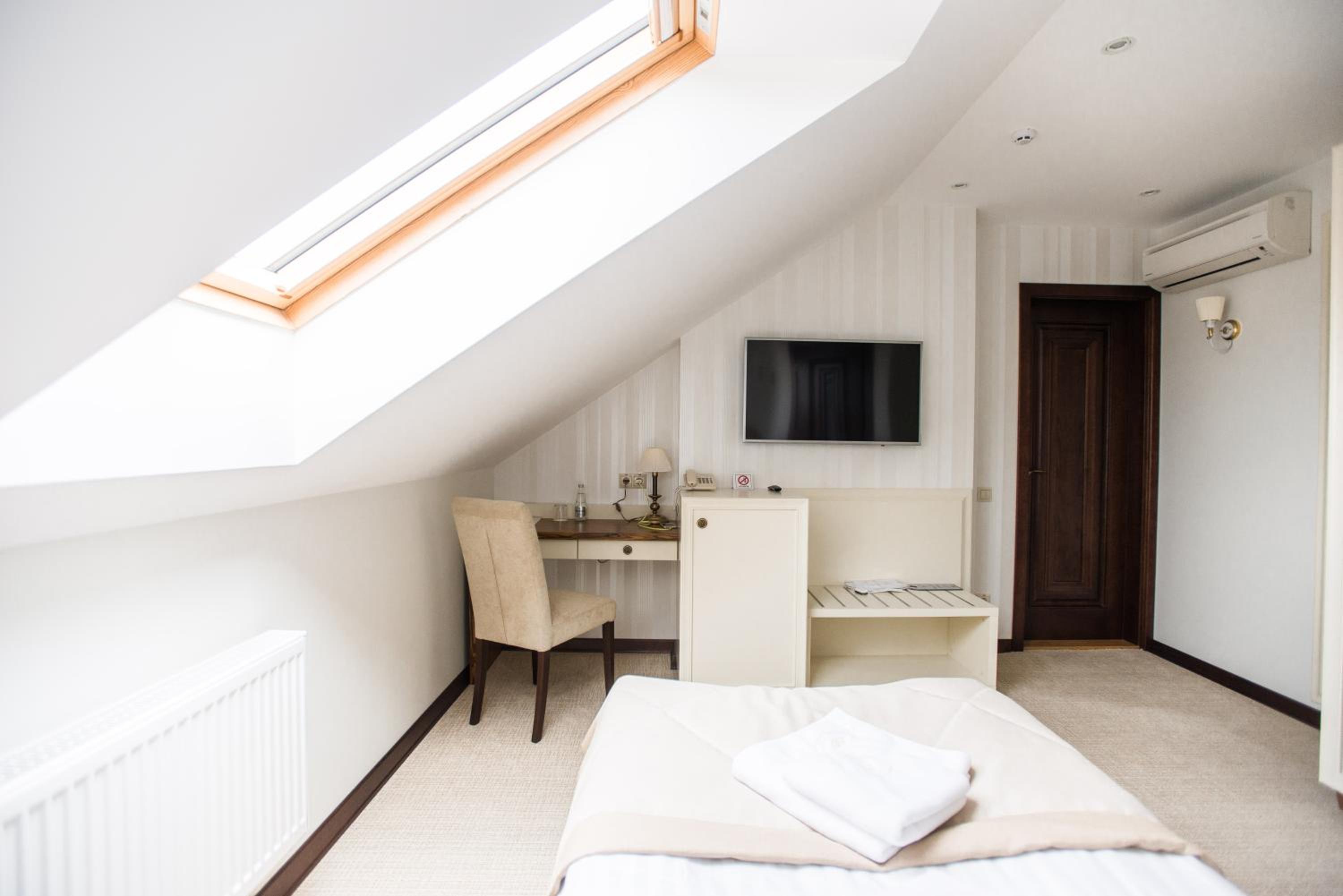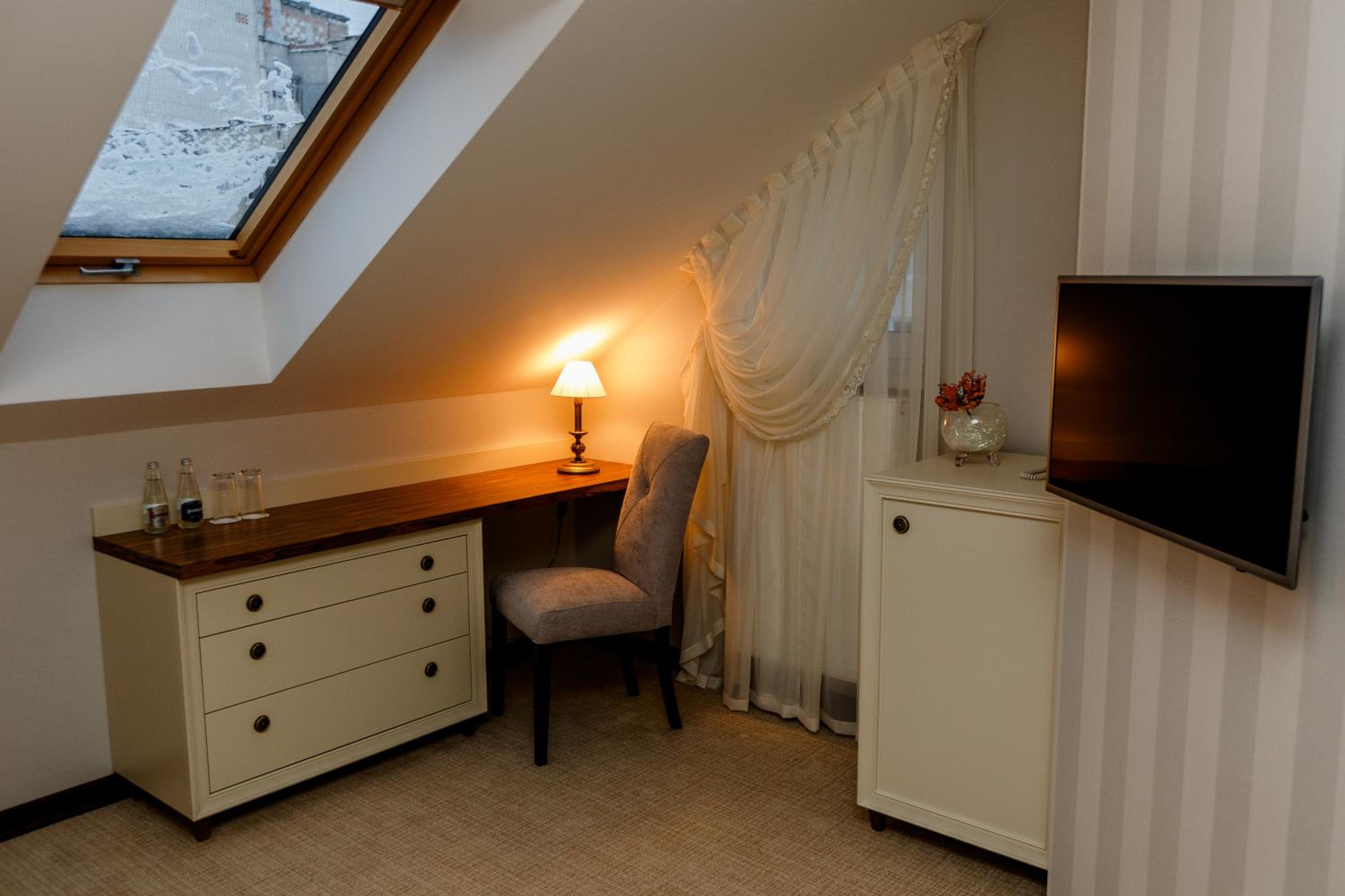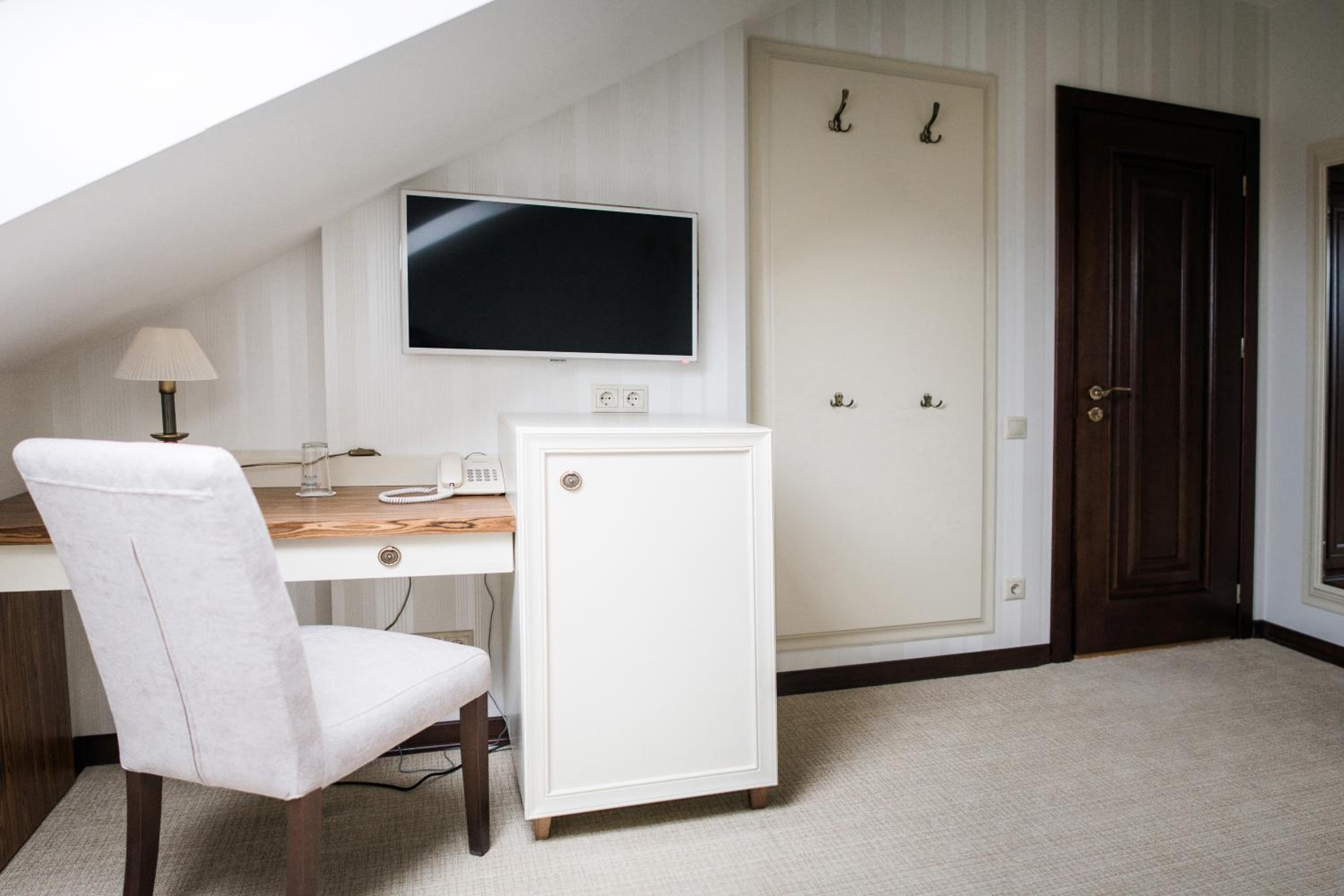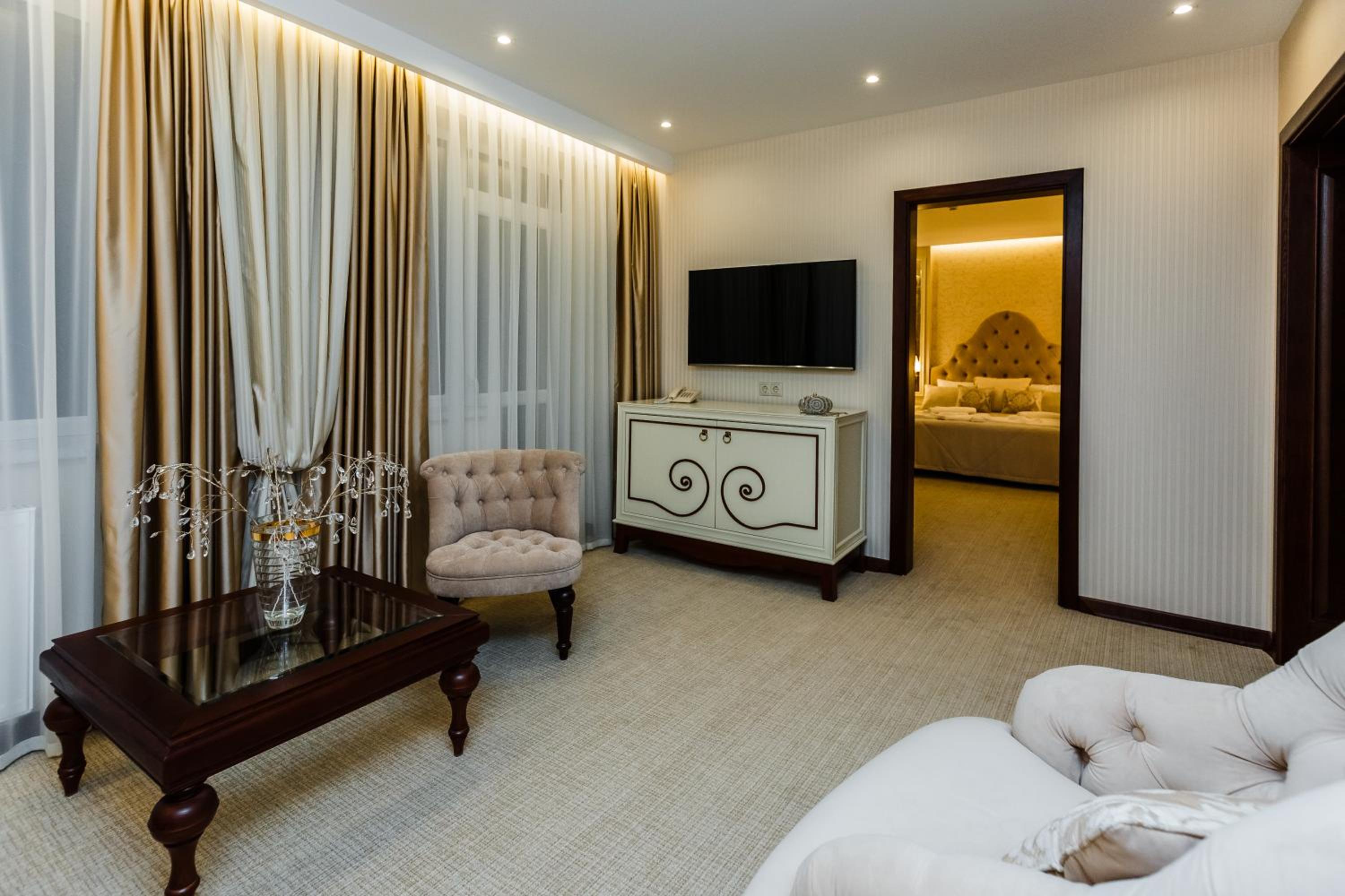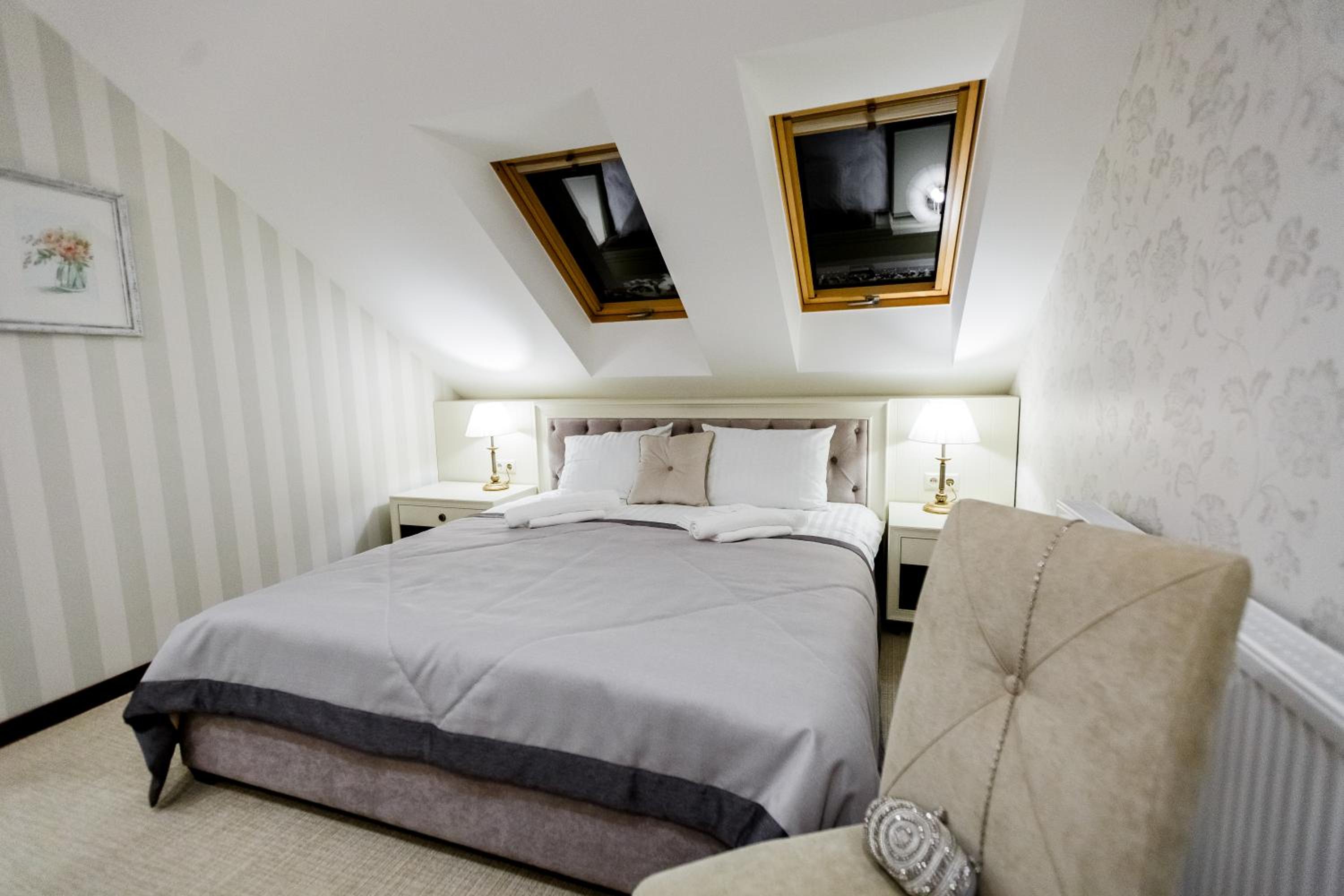 Galant Hotel in Truskavets offers elegant rooms equipped with modern amenities such as flat-screen TVs and air conditioning. Some rooms even feature charming terraces for a relaxing stay.