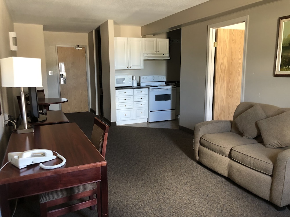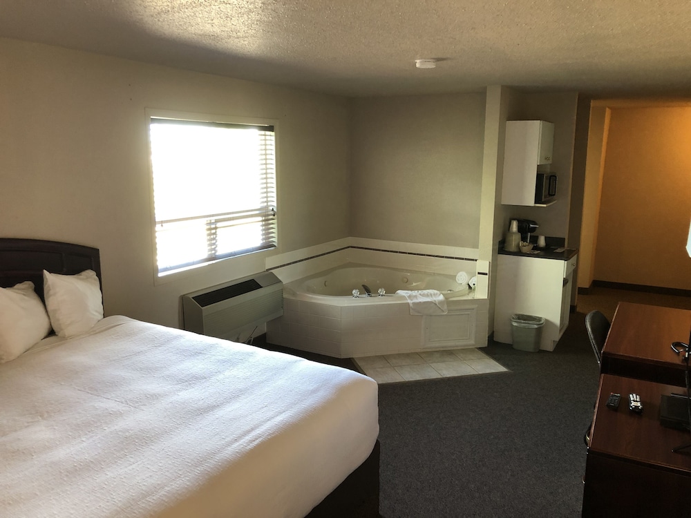 We had an unplanned overnight stay in Wainwright when there were apparently a number of events happening in town, so we called the R & R from down the block, hoping they had space. Fortunately, they had an executive suite available for a very reasonable price - almost so good that we were a little worried what we were getting into. We had nothing to worry about; the room not only had a king sized bed, but it had a double jacuzzi bathtub - score!! Everything worked fine, it was quiet, it was clean, and it was quite a large room. The hotel doesn't include breakfast, but the reasonable price more than covered the cost to eat out. The only (minor) drawback was there was a sidetable on only one side of the bed, when there was lots of room to put a small table on both sides; as a result, one side was pretty dark without a lamp. The front desk staff was efficient. It was not a fancy hotel, but we would certainly stay at the R&R again.