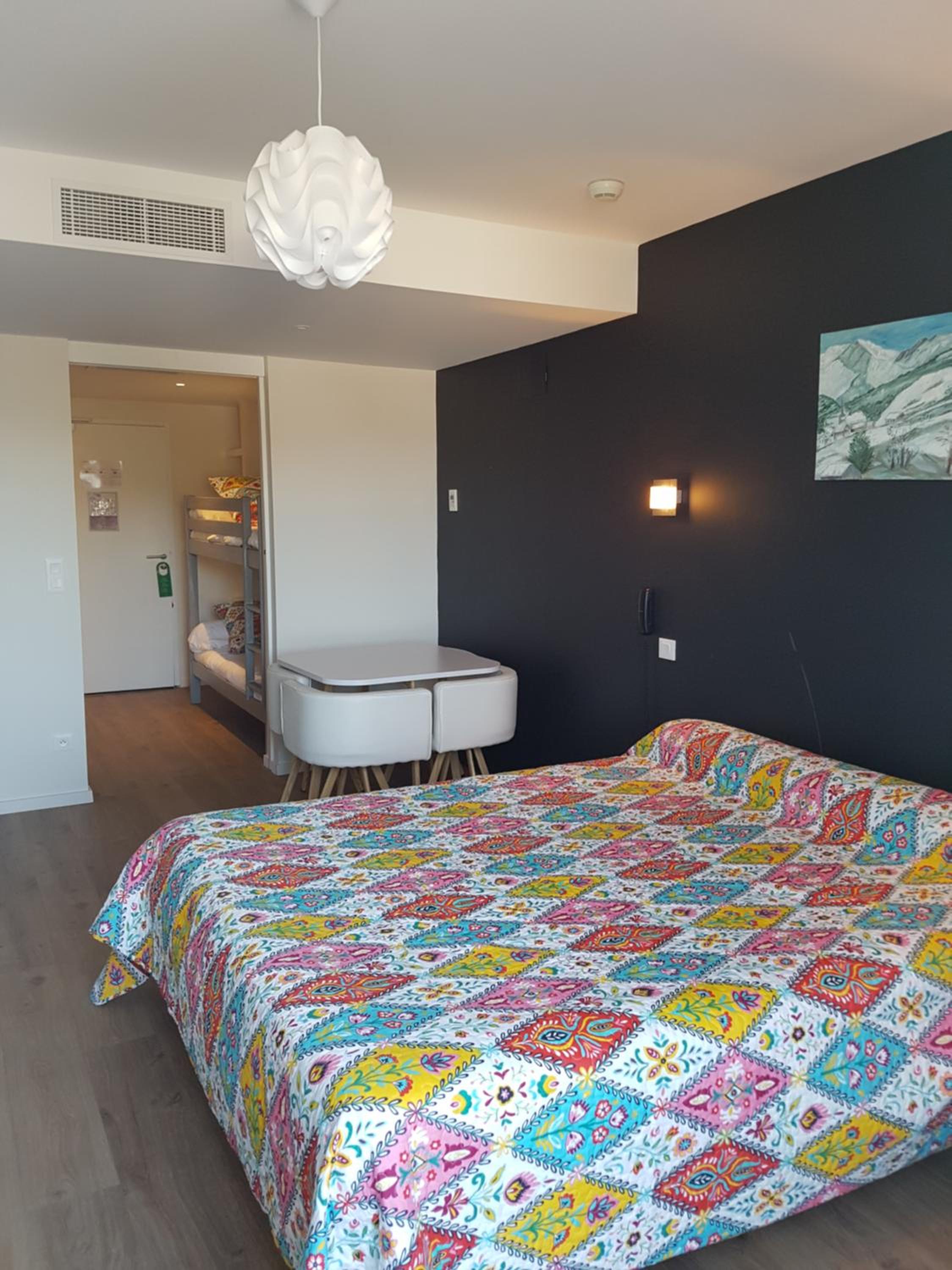 Alors ...le 1er point pour nous c de pouvoir voyager avec nos animaux et ils ont aussi passé un super séjour dans une chambre cuisinette avec tout les équipements simple pour pouvoir manger un petit balcon avec une super vu sur les colline. Grand lit confortable correspondant à nos attentes.