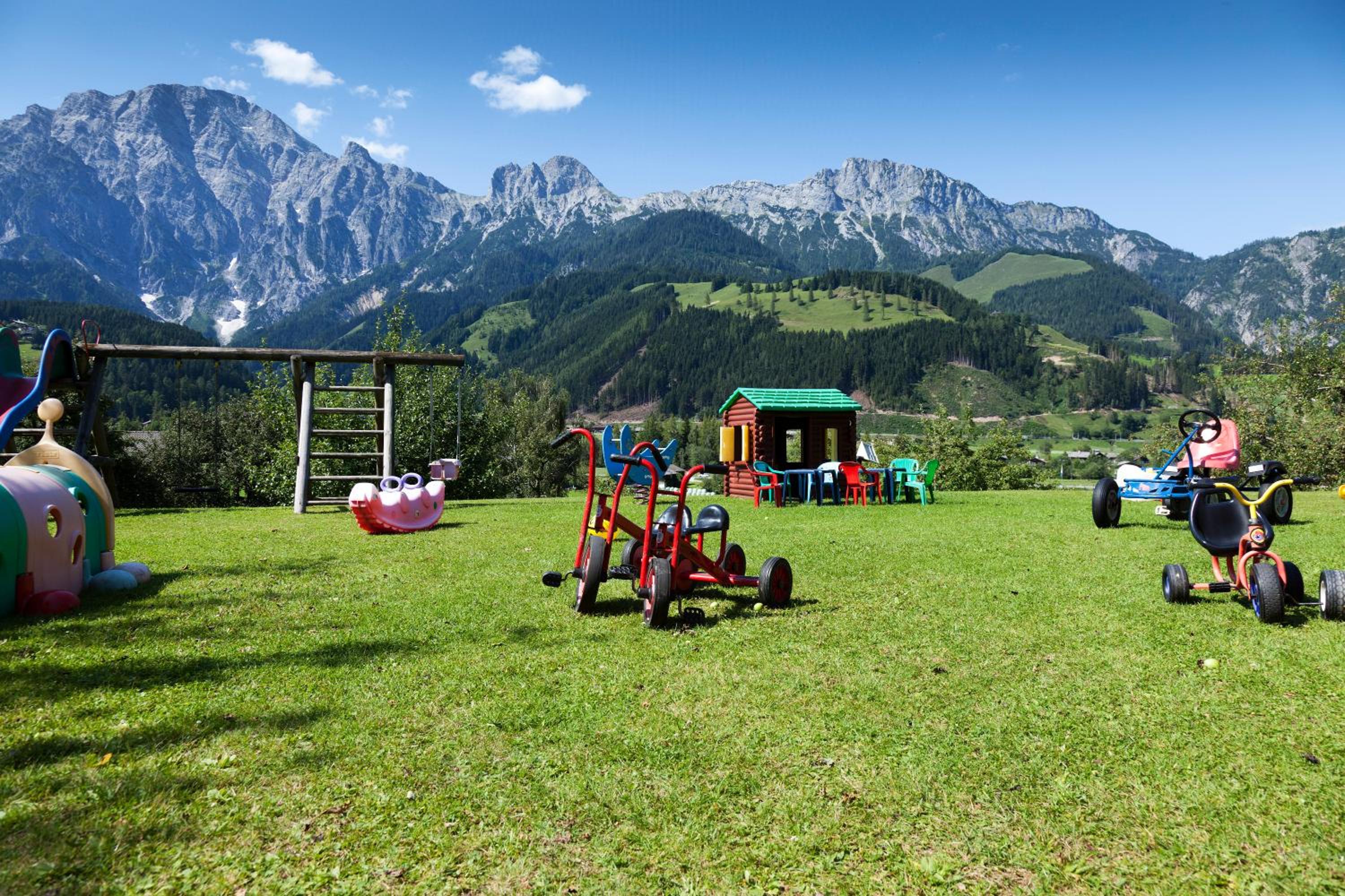 Families will love the large garden with a sunbathing lawn and playground, perfect for kids to enjoy. Special children’s activities like summer tobogganing are available nearby, ensuring a fun-filled stay for the little ones.