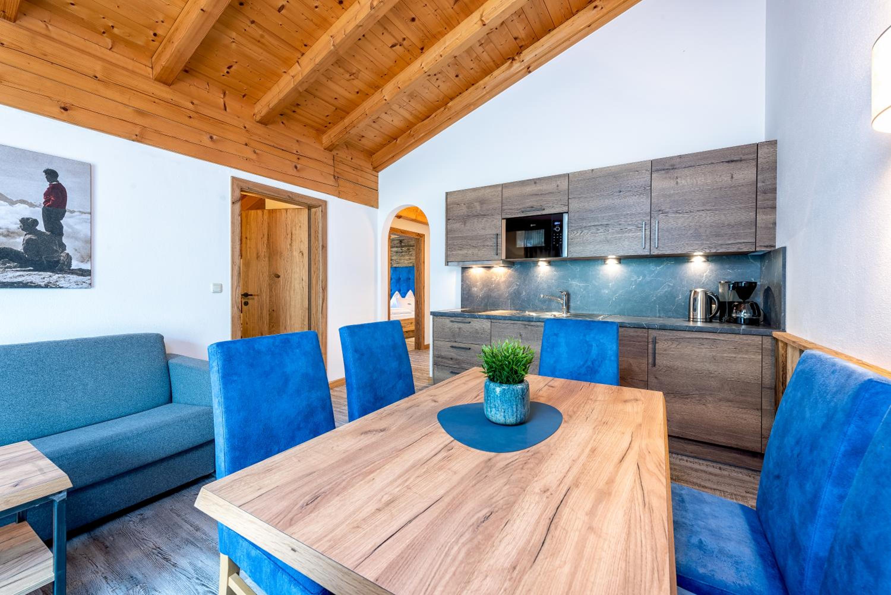 Ubytování pro 5 člennou rodinu bylo perfektní , rovněž jsme si připlatili na místě za snídaně, které byly bohaté. Večer byl k dispozici vinný bar, jako self servis a drobnosti k vínu za příplatek. V dojezdové vzdálenosti autem je dostupných několik lyžařských areálů; jako dopravu je možné využít i ski buss.