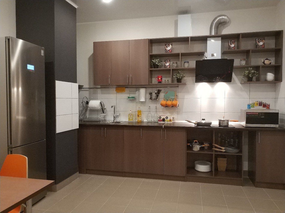 Всё отлично! Новое здание, свежий ремонт. Сантехника работает, простыни чистые, сетки на окнах, номера уютные, ощущение, что ты - первый гость. Общая обеденная зона полностью оборудована всем необходимым. Новая бытовая техника и посуда. Телевизор, игровая приставка в общей зоне отдыха. Места много.