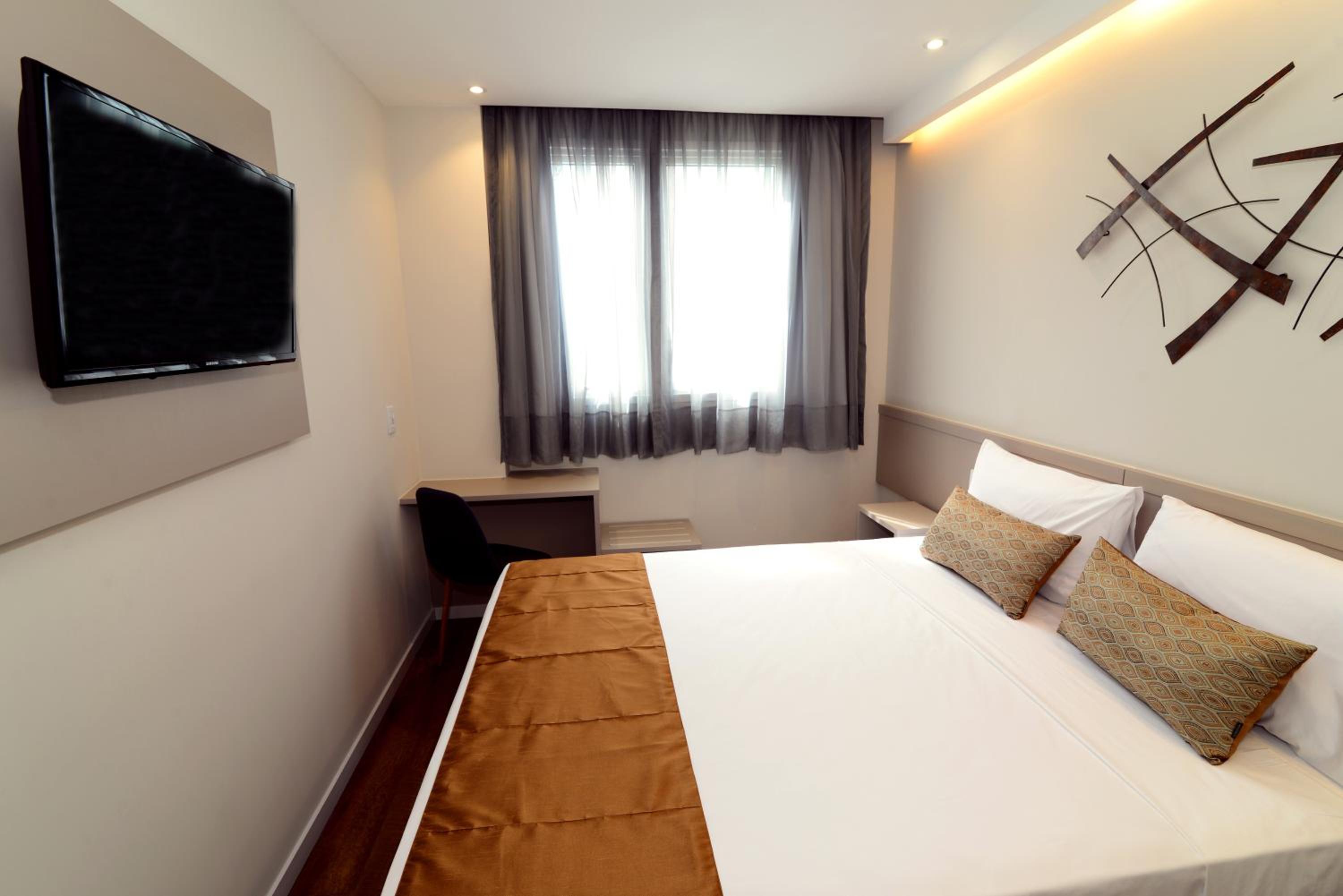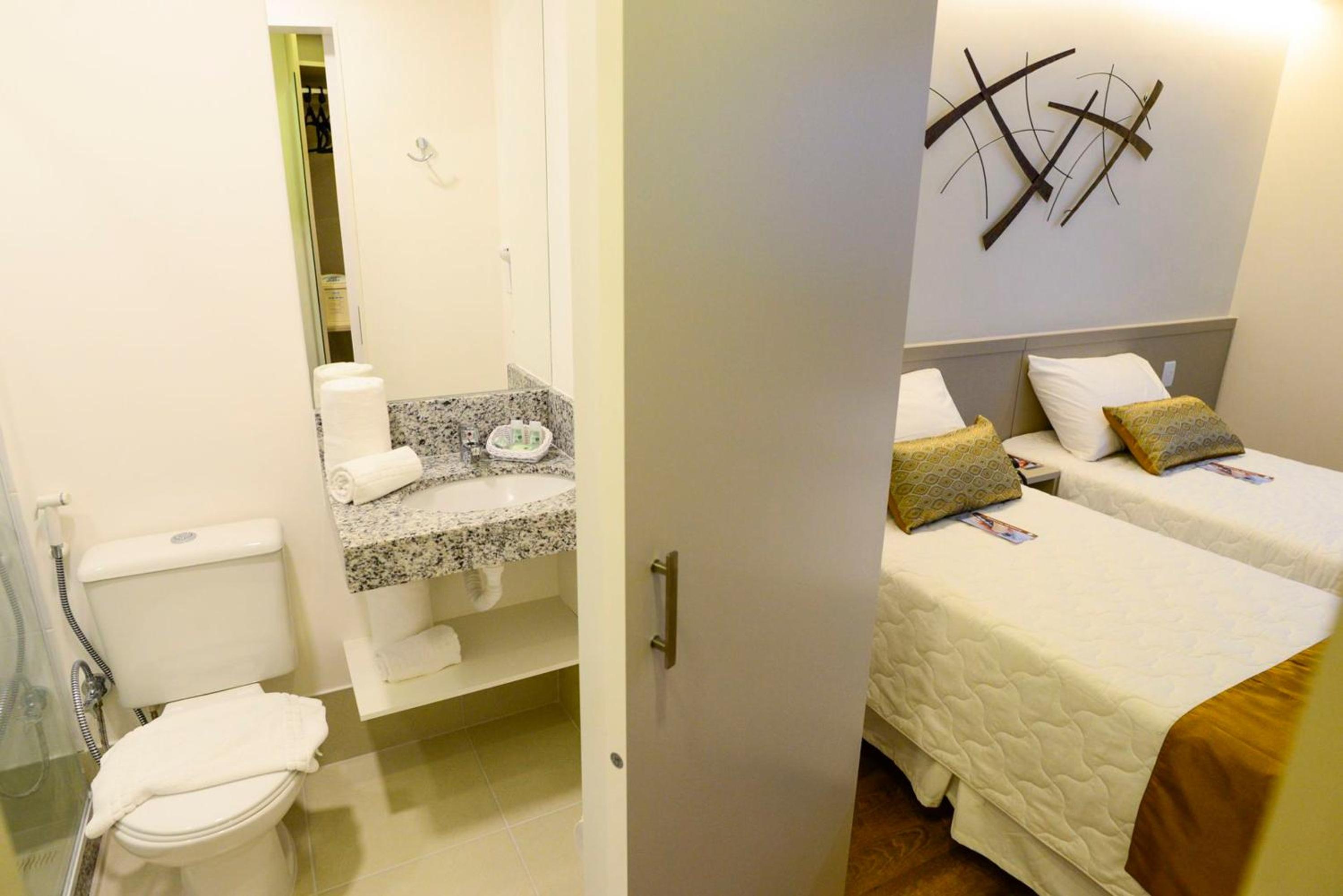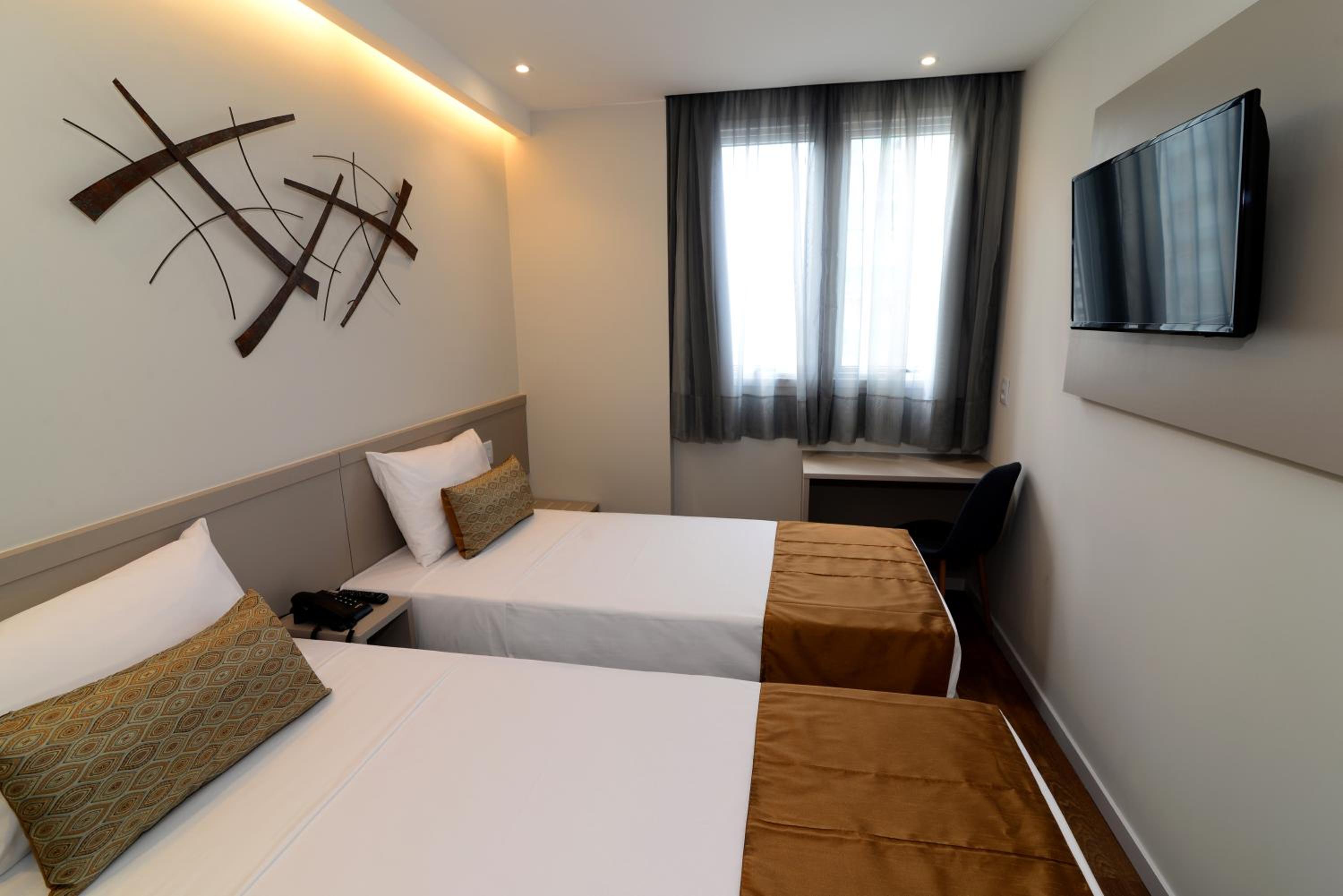 Quarto pequeno, mas atende as expectativas de quem vai passar a maior parte do dia fora. Estacionamento pago no hotel.