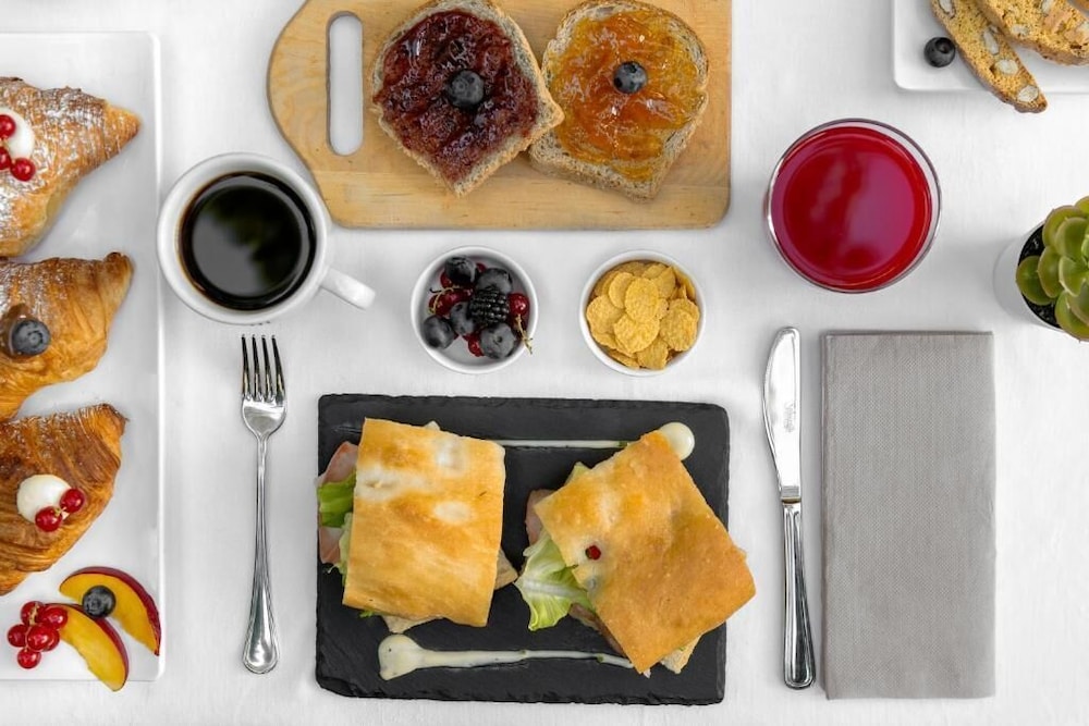 Buona posizione, buona e varia colazione. Parcheggio facilitato per i clienti (a pagamento, come dappertutto), stanze migliorabili.