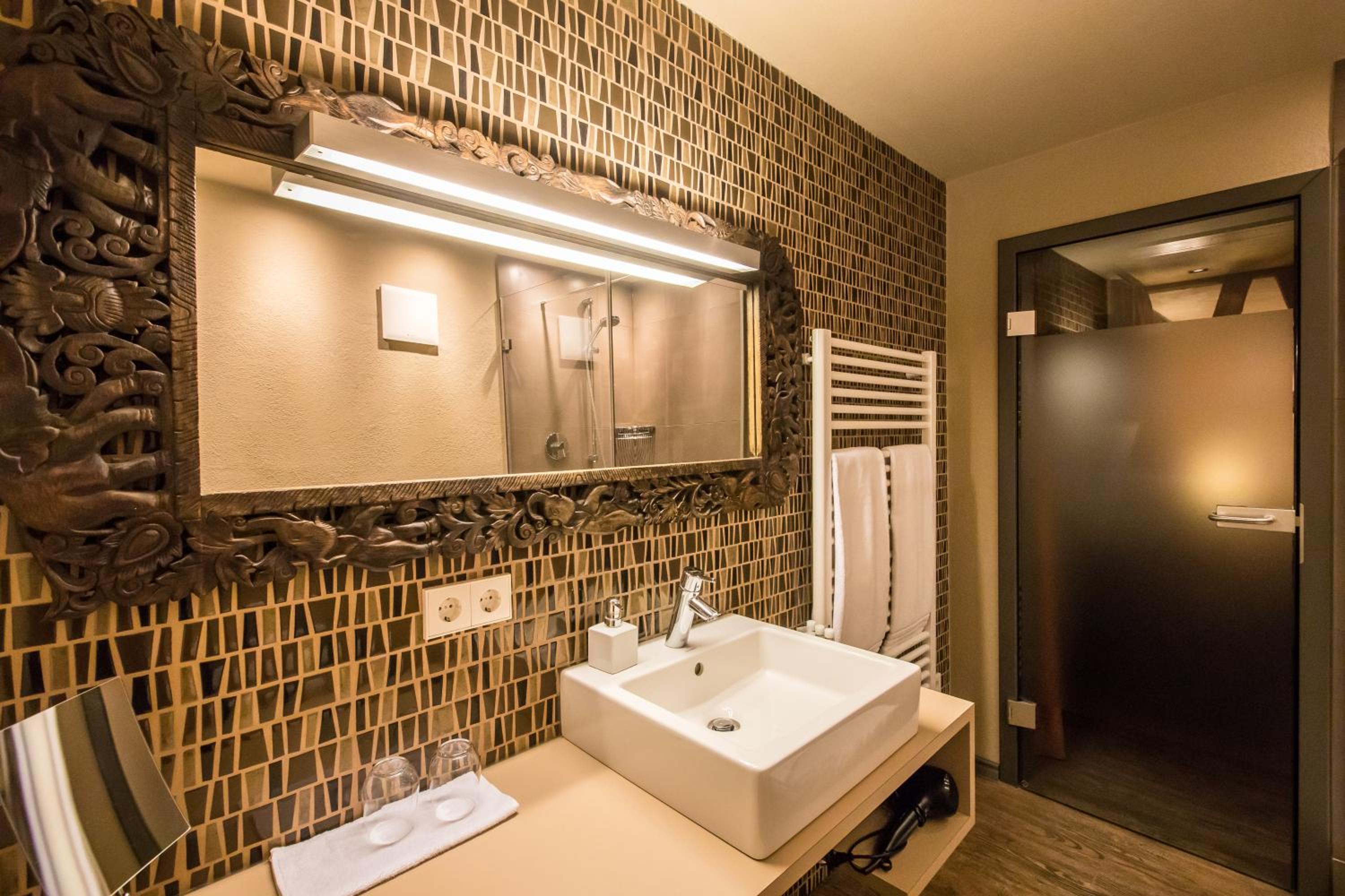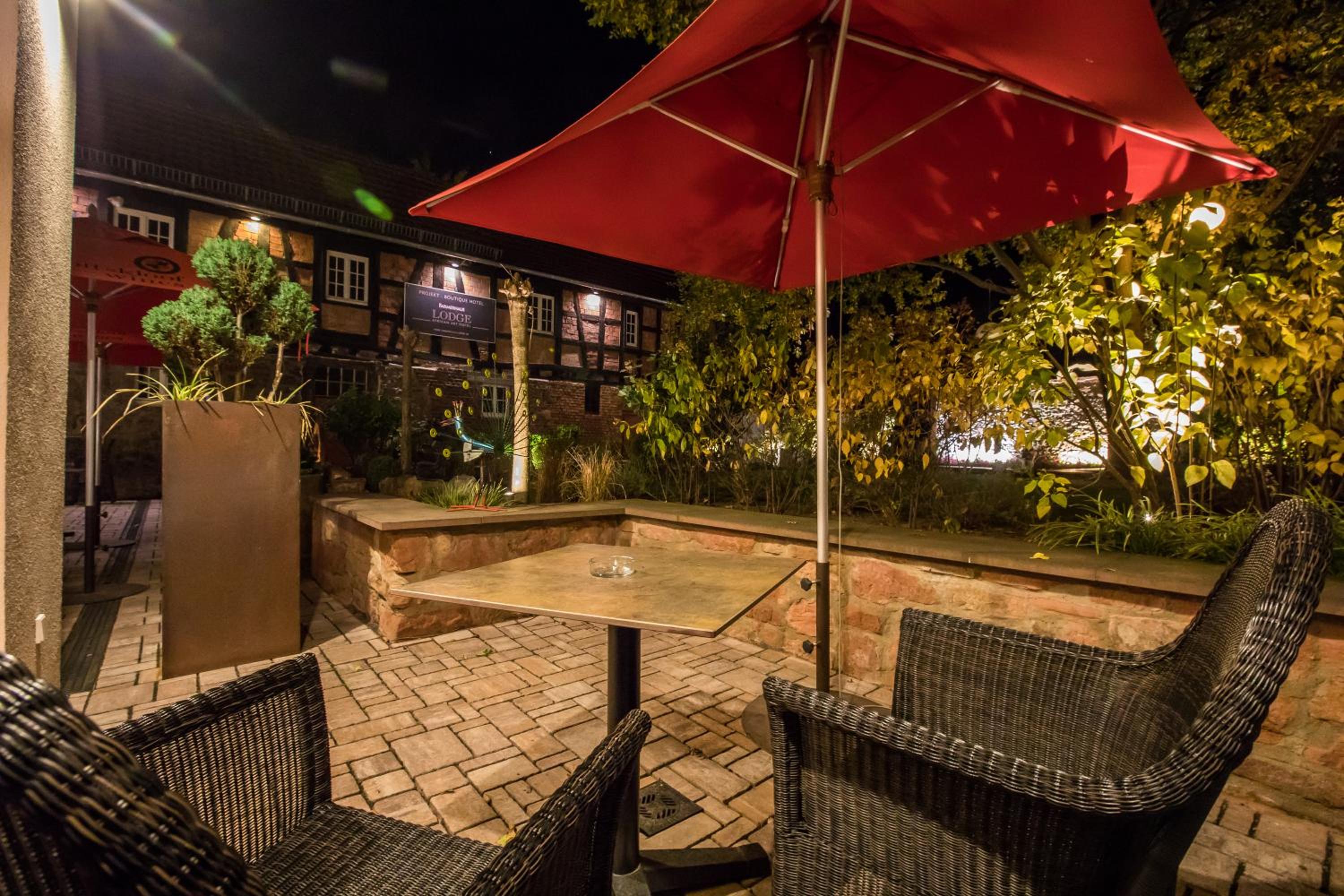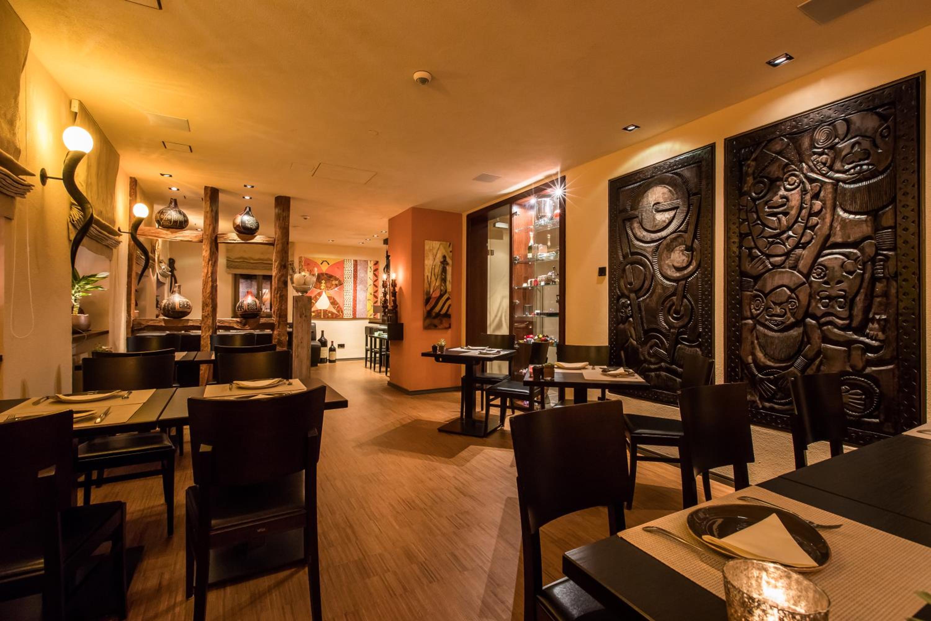 Experience the unique charm of Farmerhaus-Lodge with its captivating African-themed decor that immerses you in a world of exotic elegance.