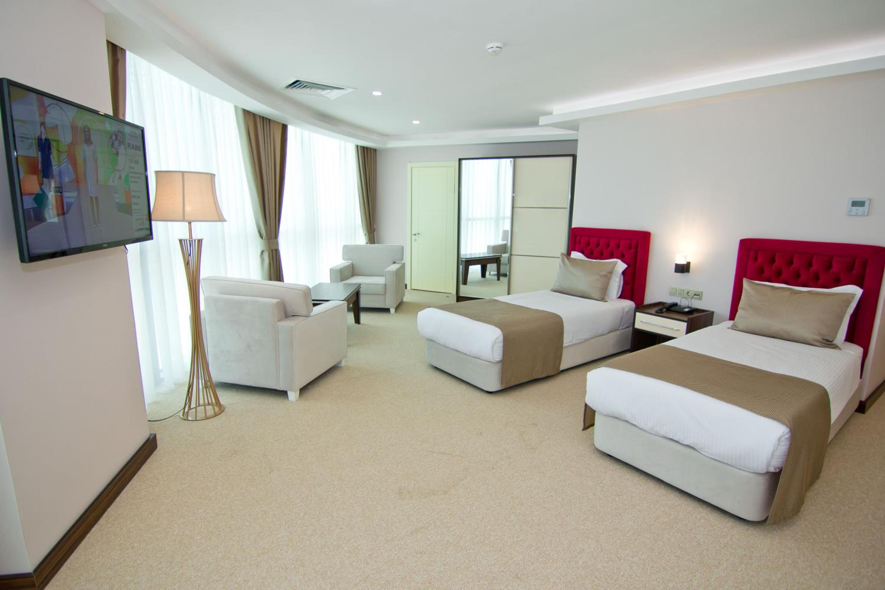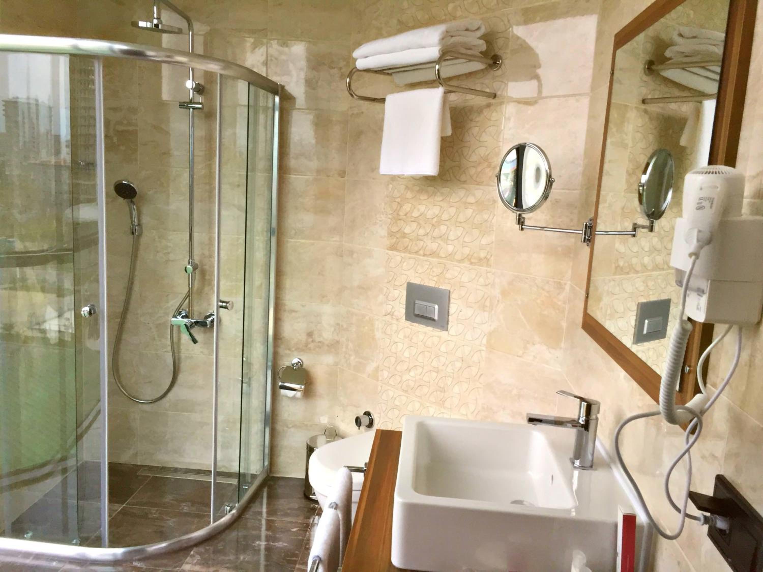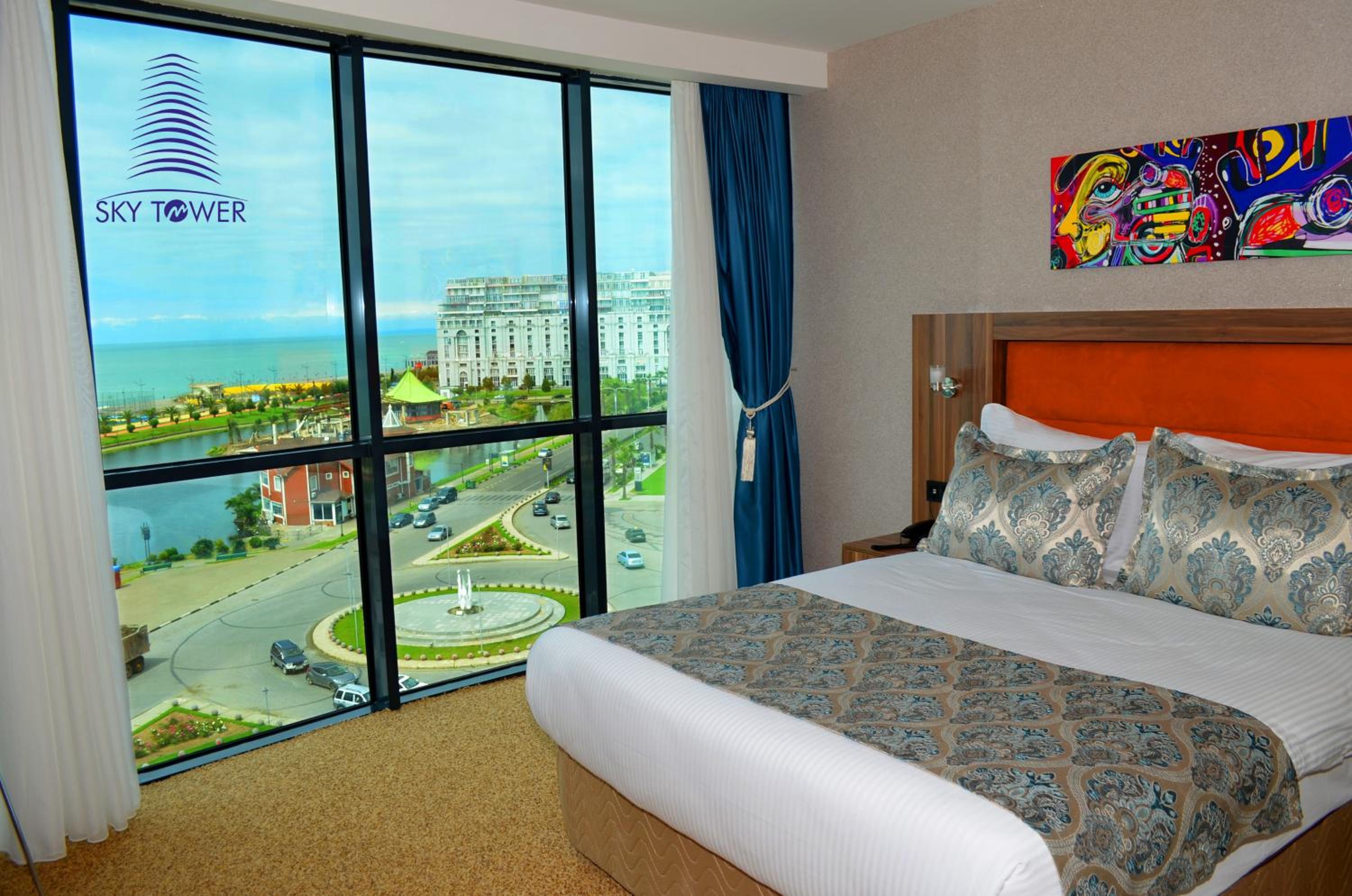 The Sky Tower Hotel offers a spa center, private parking, and free WiFi for all guests. Each elegantly decorated room features air conditioning, a flat-screen TV, a working desk, and a minibar. The bathroom is stocked with complimentary bathrobes, slippers, toiletries, and a hairdryer for your convenience.