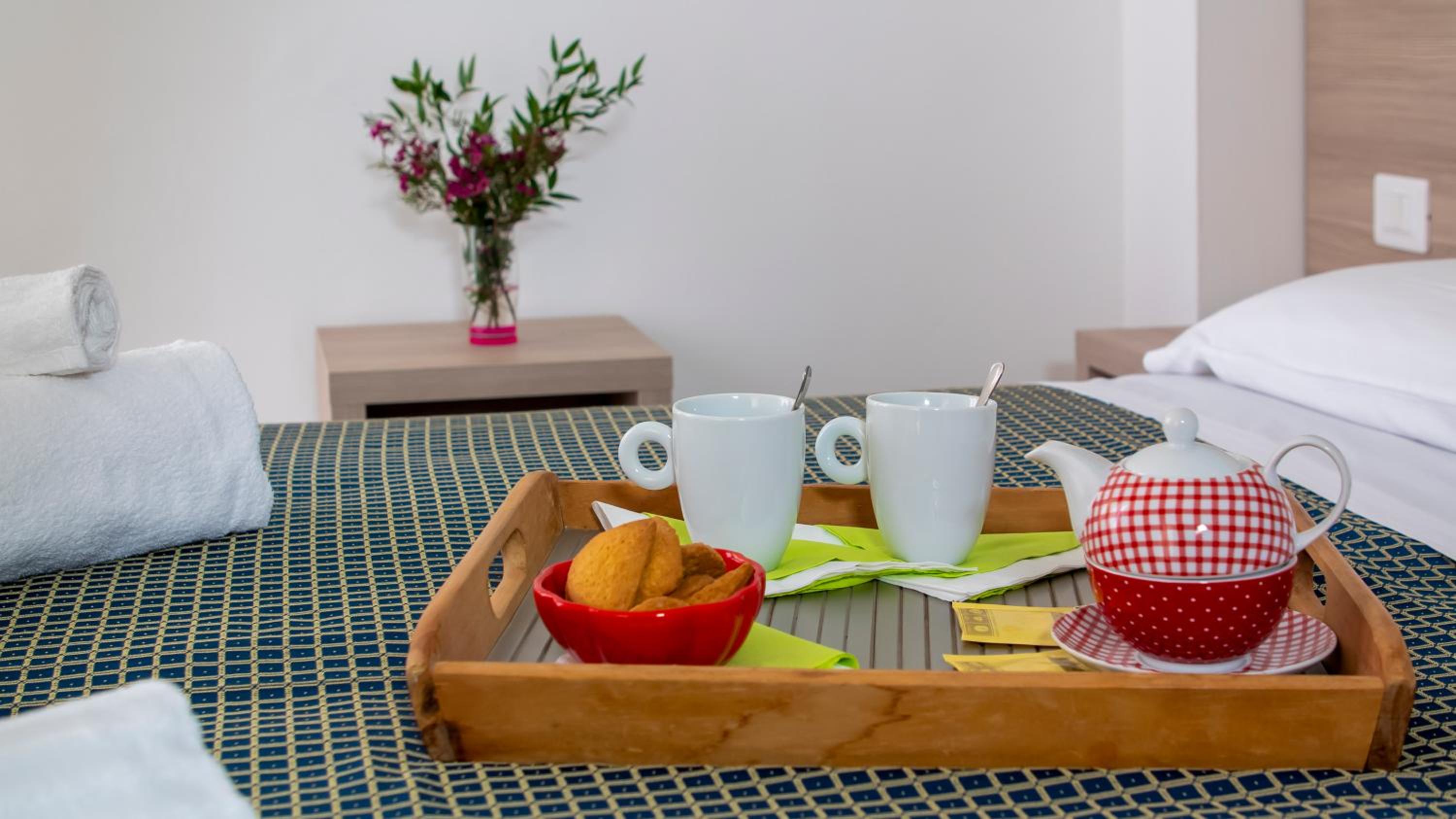 Ottimo rapporto qualità/prezzo, posizione molto comoda proprio di fronte al mare. La stanza aveva dimensioni adeguate, pulita e ben tenuta, con cambio regolare di lenzuola e asciugamani durante il soggiorno. La colazione è abbastanza varia e permette una buona scelta per iniziare la giornata. Un punto a favore anche per il personale, sempre cortese e disponibile.