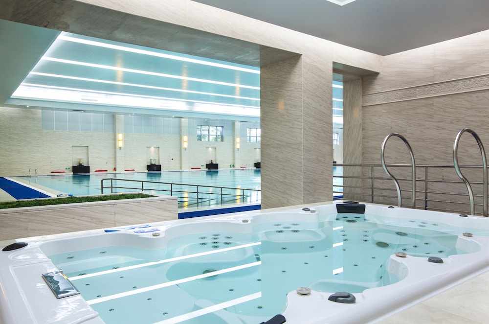 Indulge in an indoor pool, spa tub, and tennis court, with complimentary Wi-Fi and concierge services available.