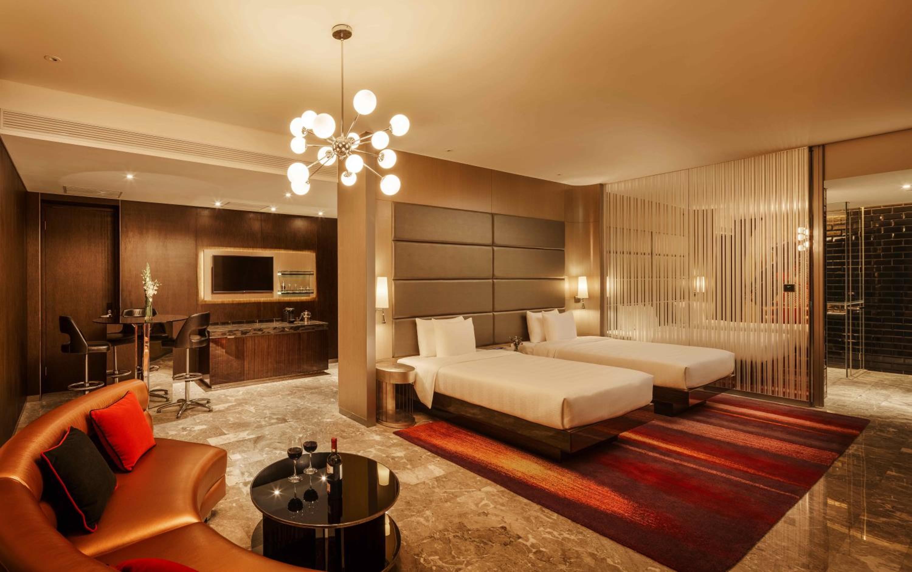Extravagant Guestrooms and Suites: Indulge in a lavish stay with extra long beds, private hot tubs, and chic contemporary decor.