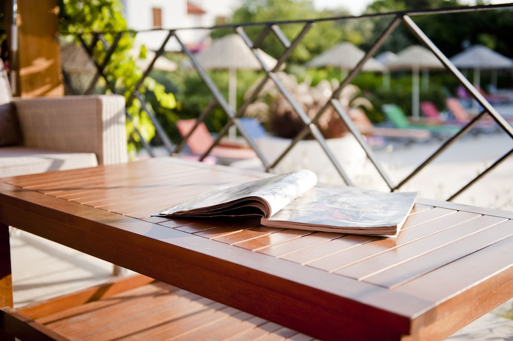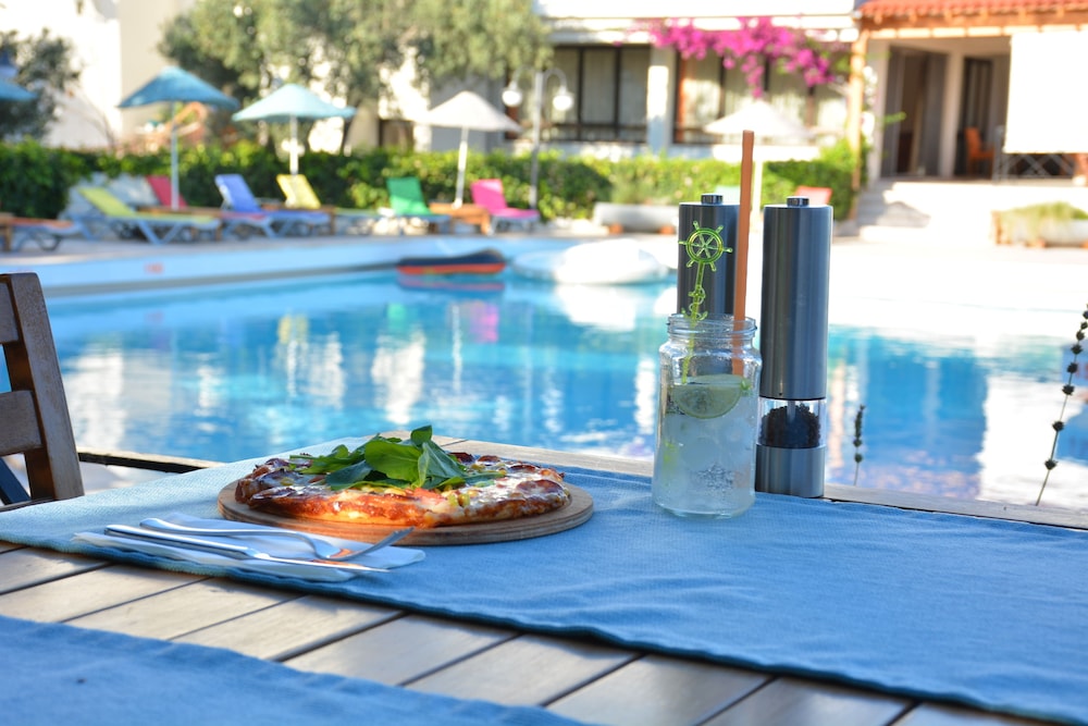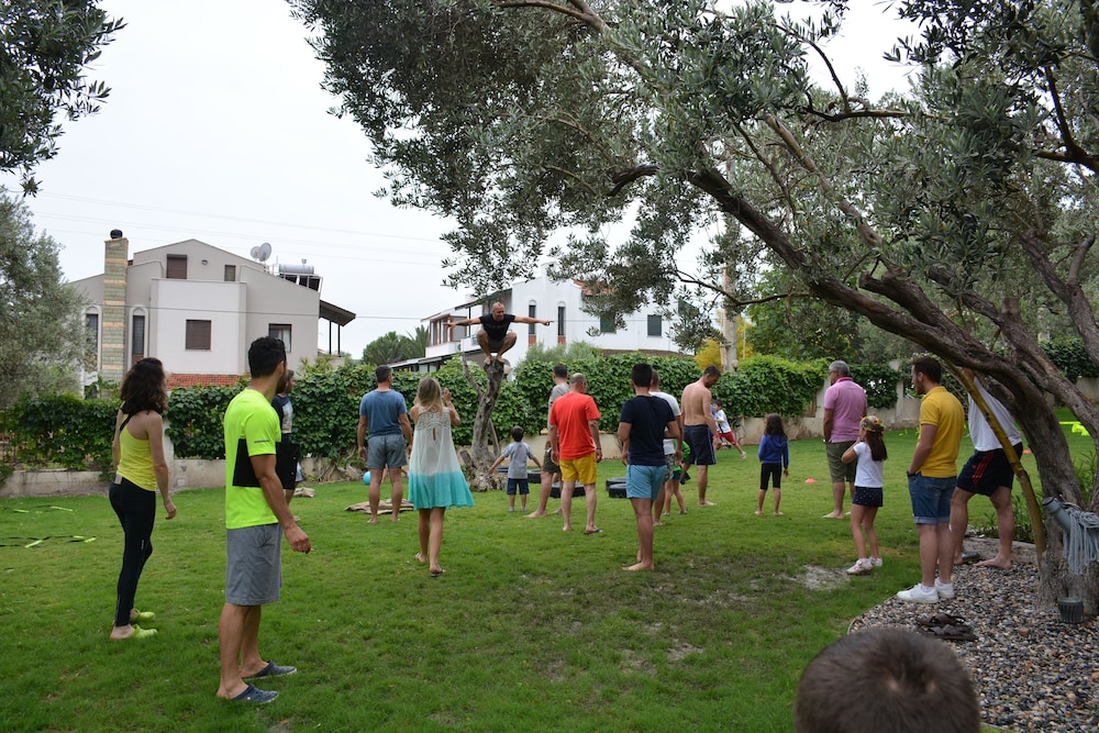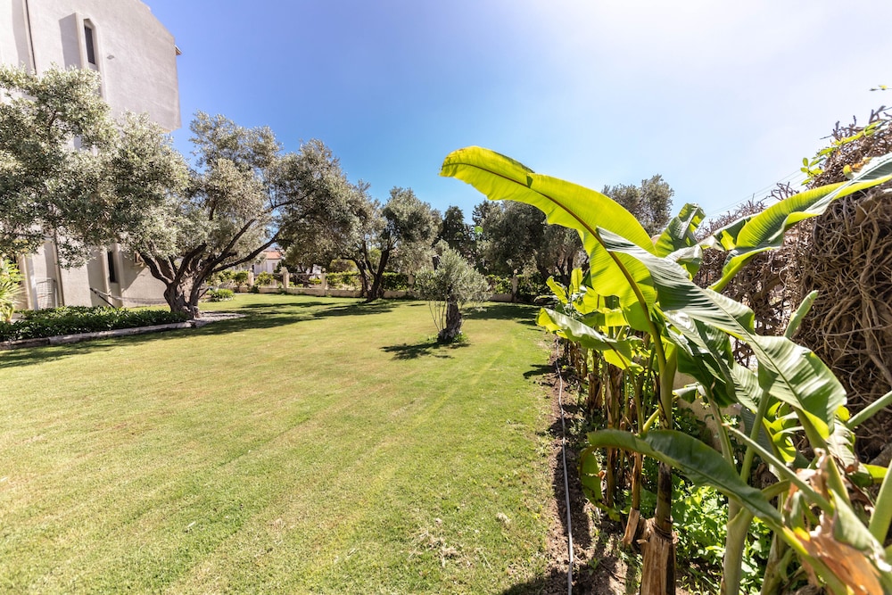 Bašta je predivna, sa mnogo maslina i cveća. Lokacija je odlična. Doručak je u predivnom ambijentu. Osoblje veoma ljubazno i muzika koju puštaju ceo dan je opuštajuća i nenametljiva. Ceo boravak je za svaku preporuku.