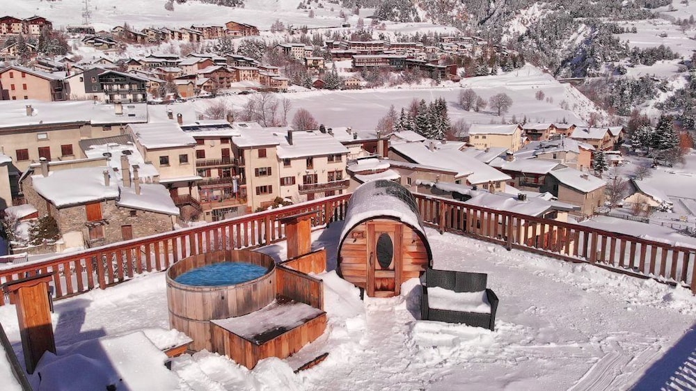 We used the hotel as a base to hike around the Aussois area over a long weekend in August. Breakfast was a great continental buffet to get you started with all the usuals including a machine to boil eggs. There is a free car park literally next to the hotel which is very convenient. At the end of a hard day hiking, the rooftop terrace is great - this offers panoranomic views of the valley either from sunbed or nordic hottub; there is also a sauna on the corner with tinted glass allowing you privacy whilst providing a view up the mountains.