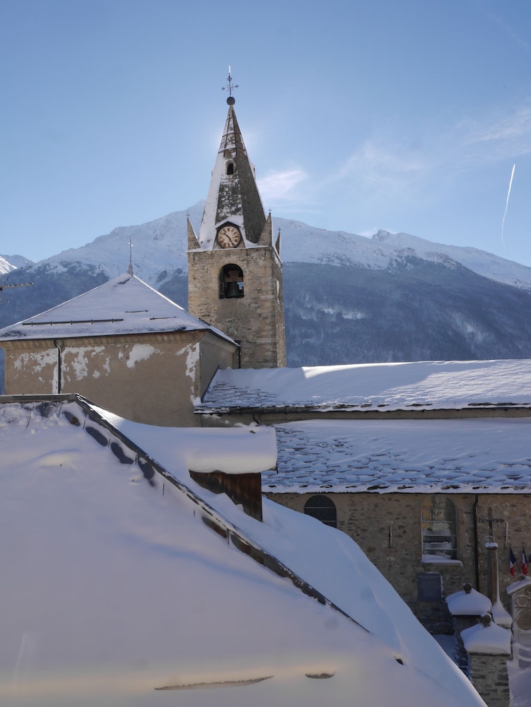 Petit hôtel au cœur d'Aussois, très bien situé. Vue sur la montagne fabuleuse depuis la terrasse de notre chambre.