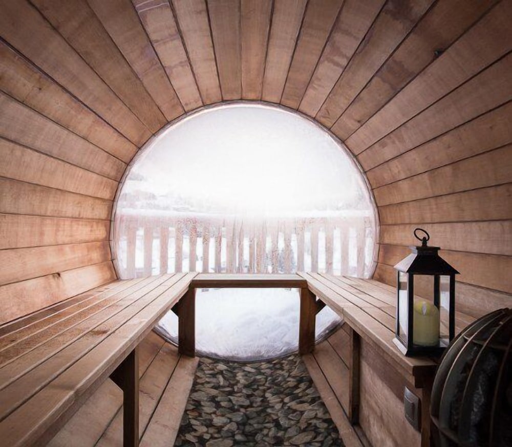 It was such a pleasure to stay at this unique establishment. The hosts take you in welcoming the place explaining their unique way of life. The location is great, next to parking lot right in town. The sauna on a rooftop with a stargazing bubble and mountain views is spectacular. The charcuterie plate serves thick cuts of local meats and cheese, don’t miss it. The dog Neige is a great St. Bernard welcoming you along with two cats.
