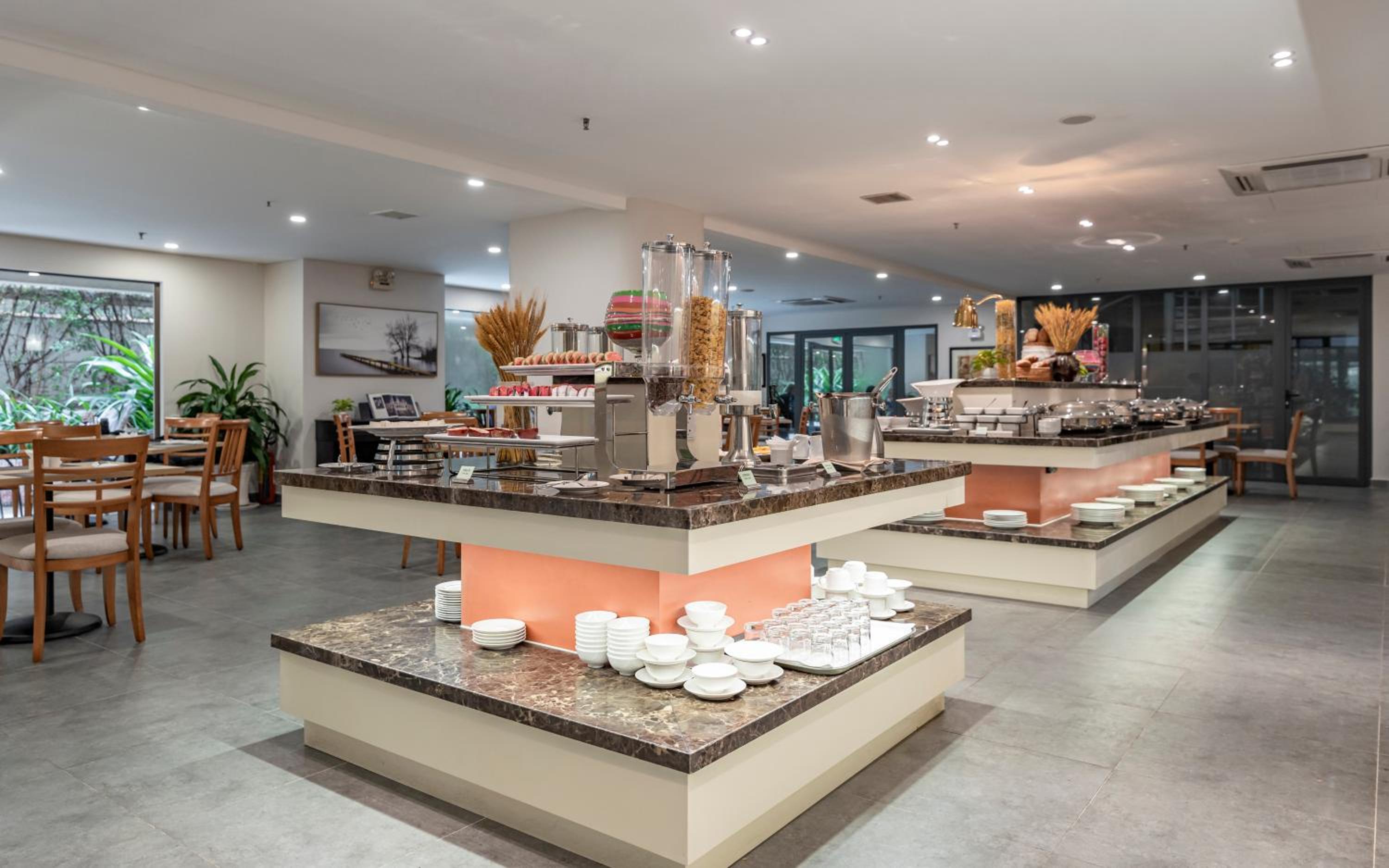 The breakfast was good. Food was always topped up. There was variety, which we enjoyed. The restaurant staff & cleaning staff were good. The location is really nice, away from busy streets. We enjoyed our walks.